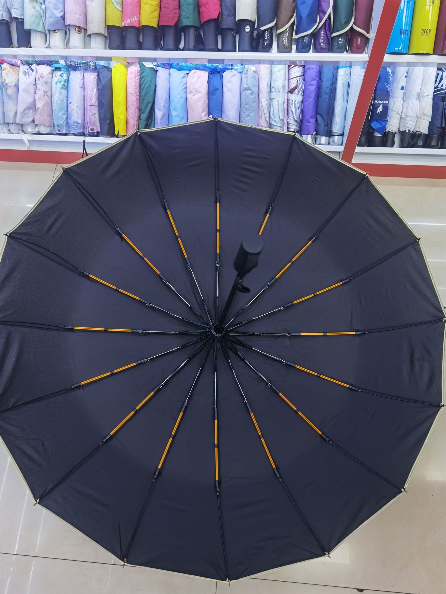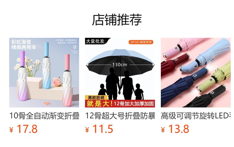 16骨2+1三折全自动雨伞,碰击布接边伞,106cm伞面,加粗伞杆,抗风抗雨