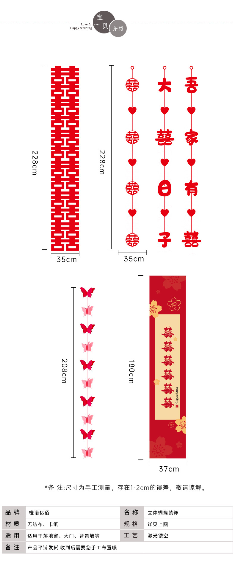 锁美婚房布置窗帘装饰结婚拉花挂饰婚礼新房男方女方喜字门帘ins婚房布置套装结婚礼蝴蝶装饰新房卧室客厅男女方拉花窗帘挂件