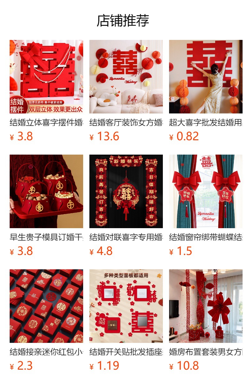 小喜字批发结婚专用手抛喜囍字贴纸婚礼装饰婚房布置套装婚庆用品