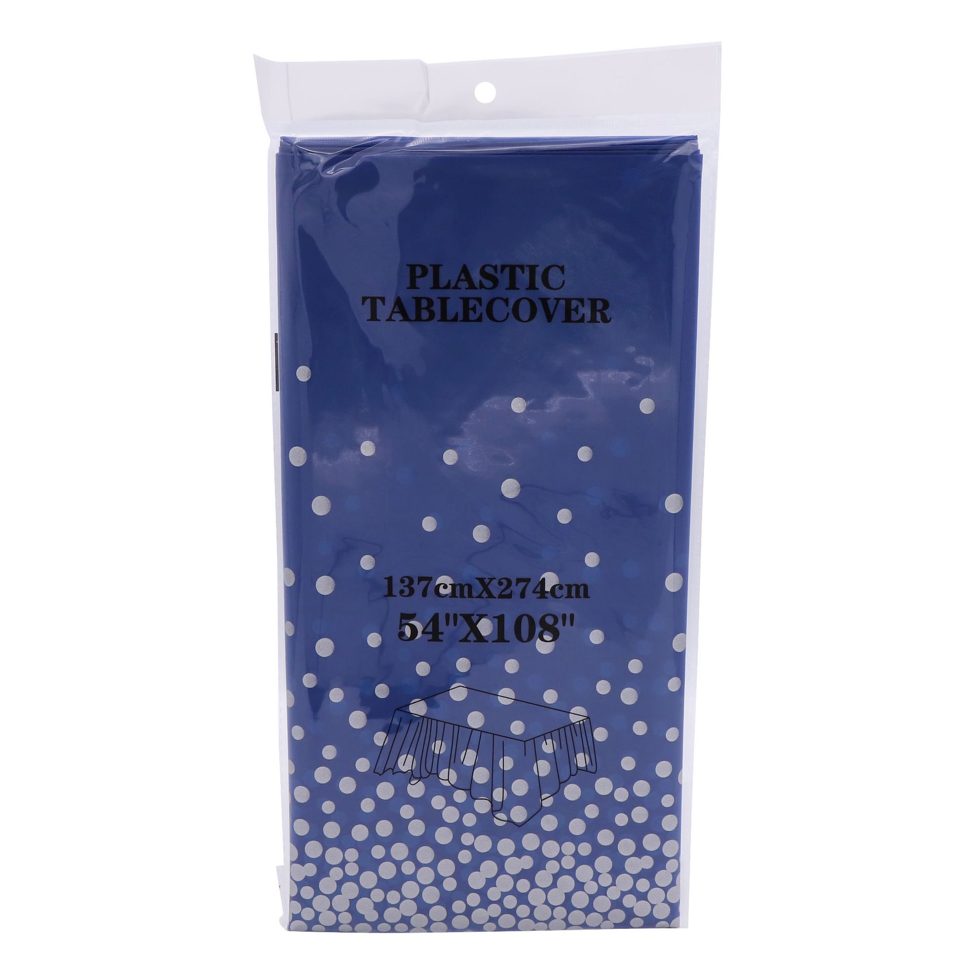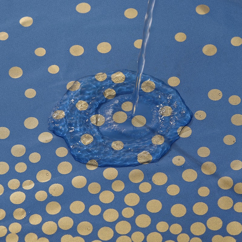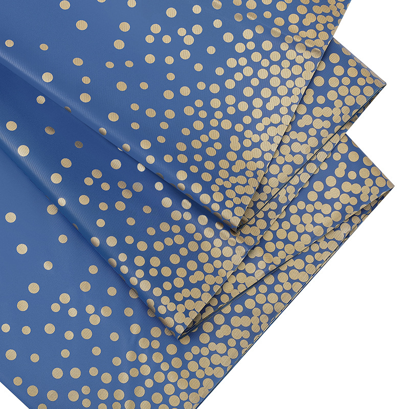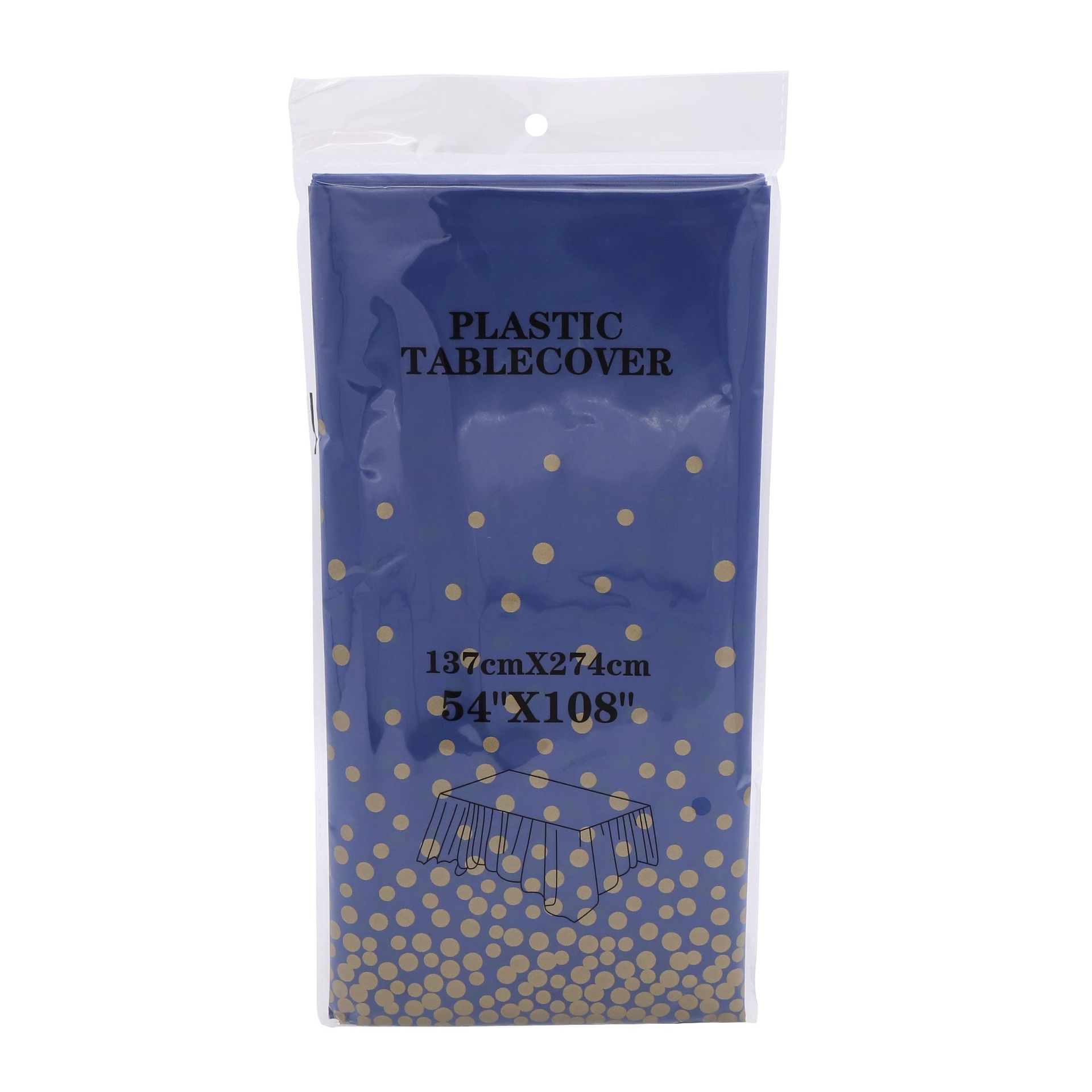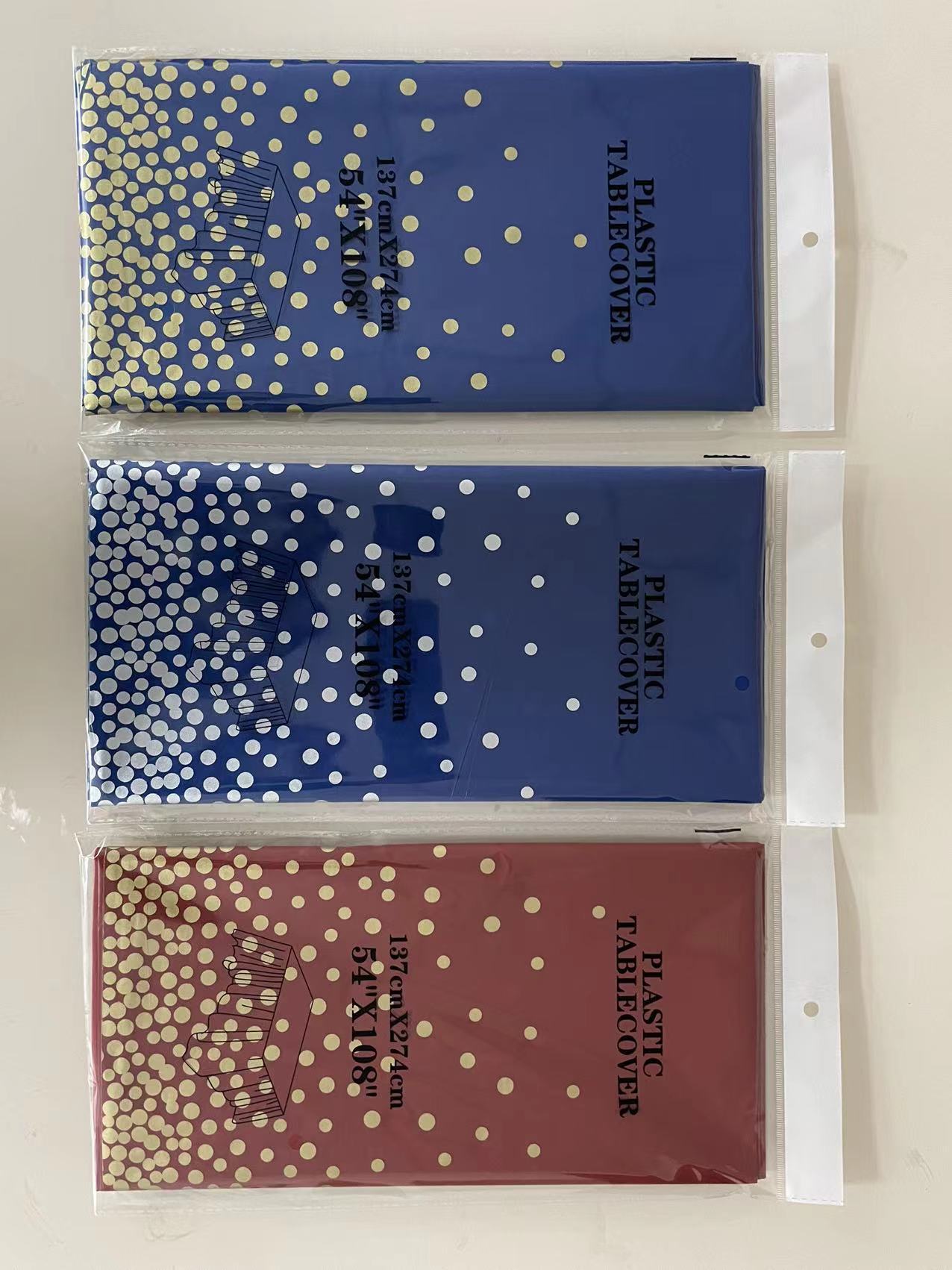 厂家蓝底烫金圆点一次性桌布PEVA台布派对用品印刷餐桌蓝金
