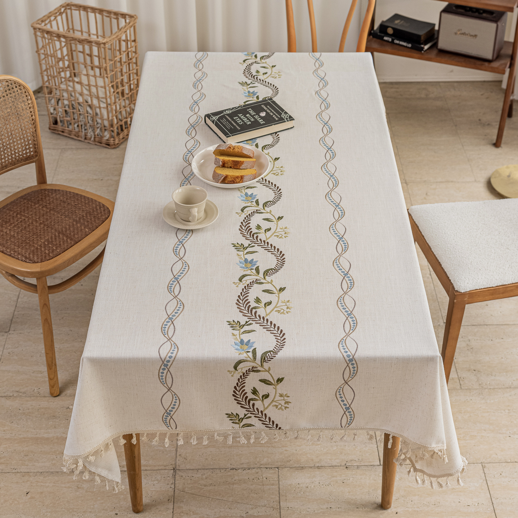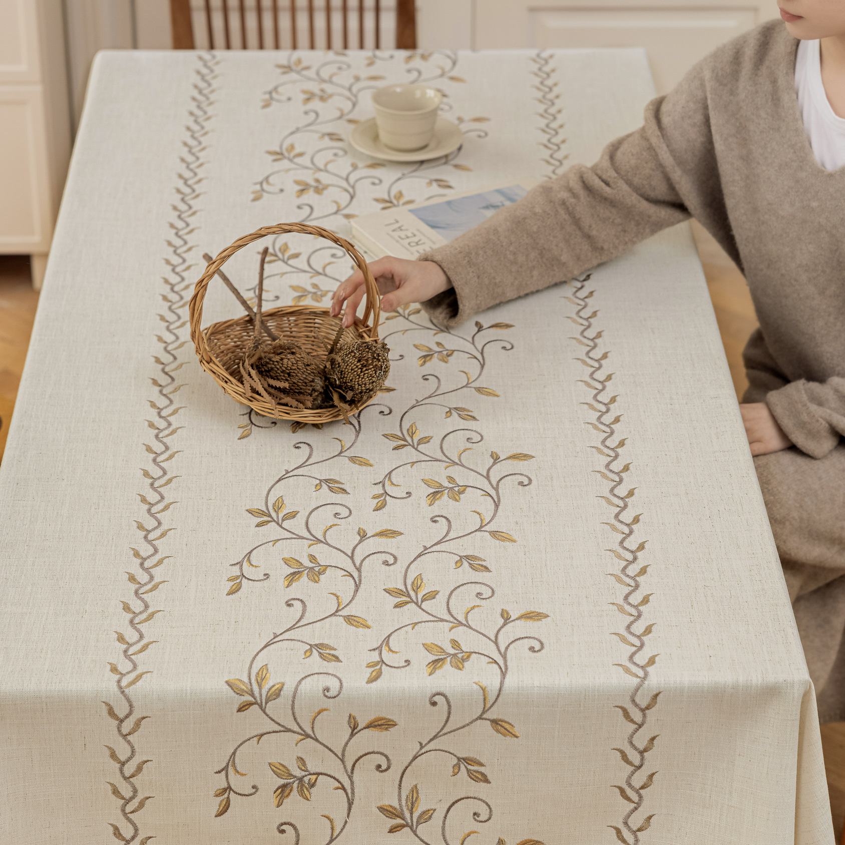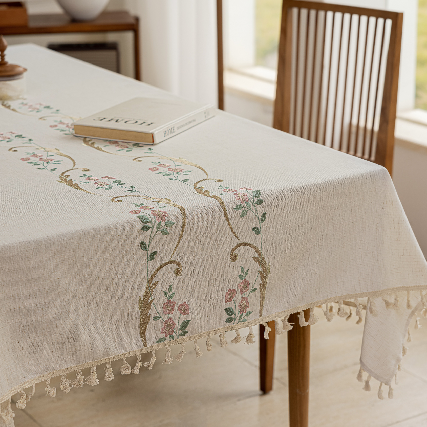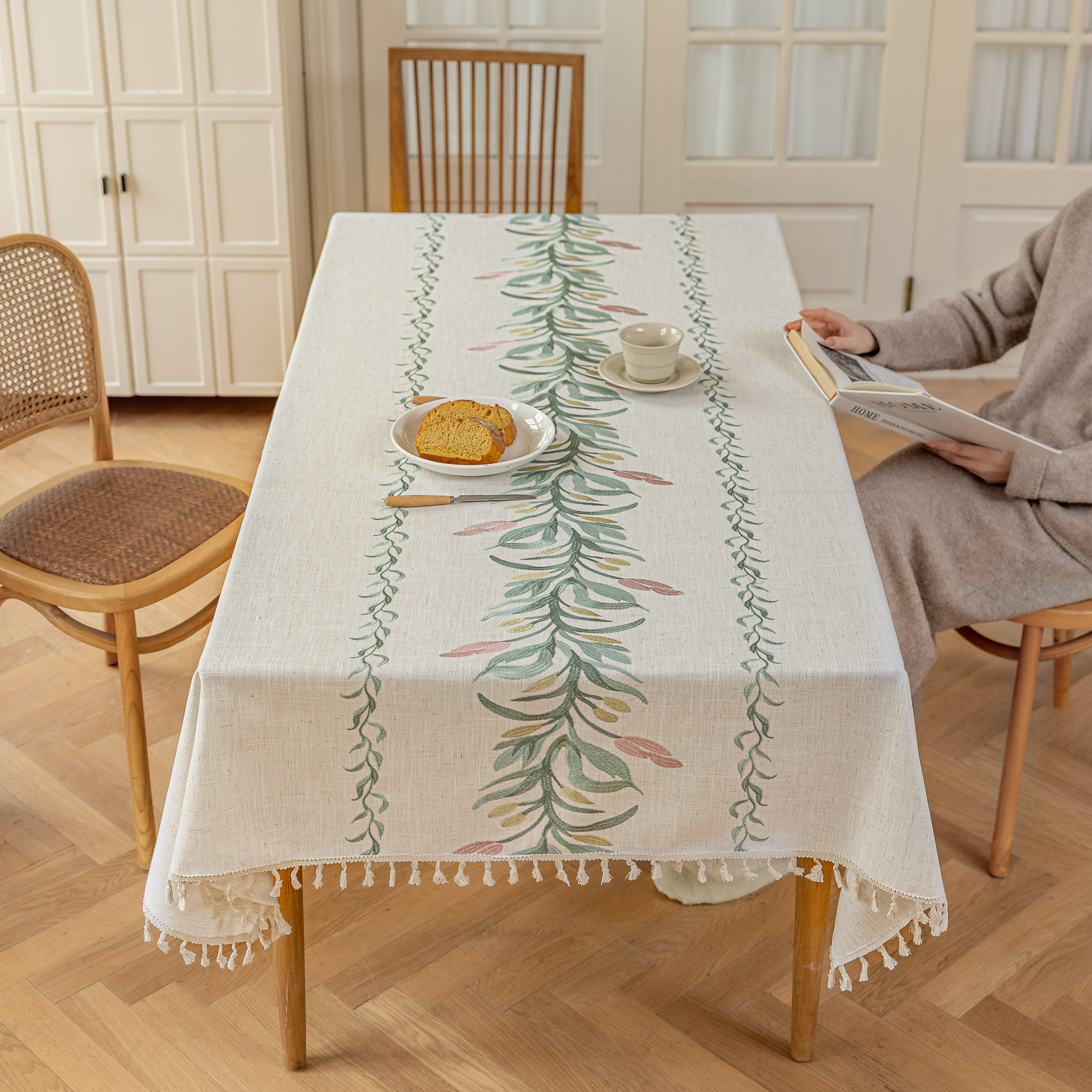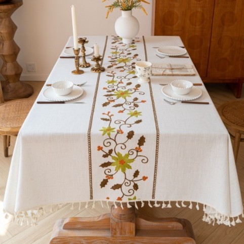 2:本厂何布料可以定制配套桌布、桌旗、餐垫、杯垫、抱枕、腰枕、沙发巾和窗帘等一系列居家用品配套产品。(如有需要联系联系客服)