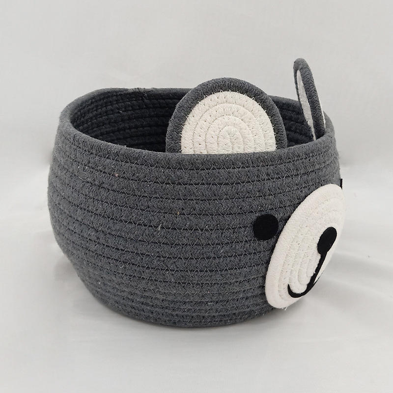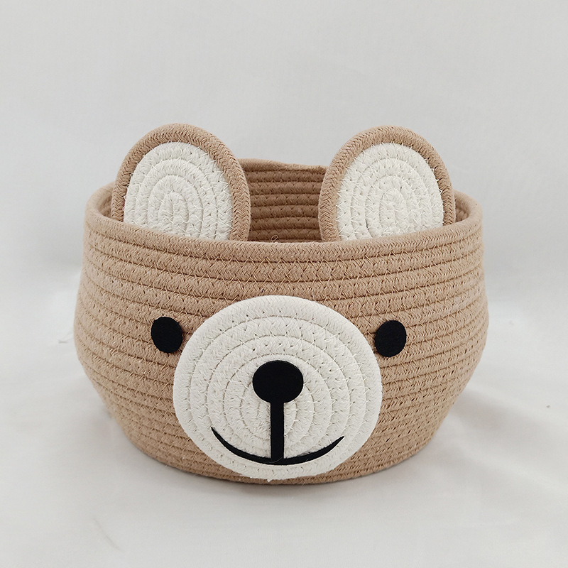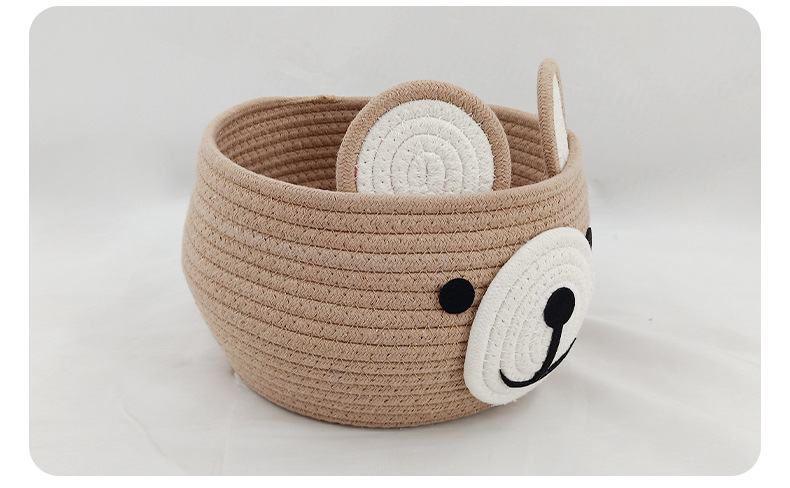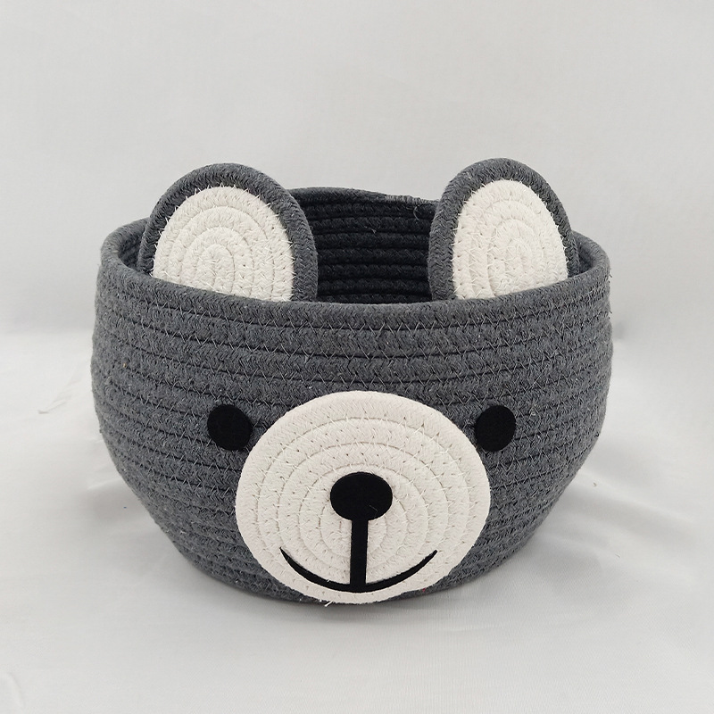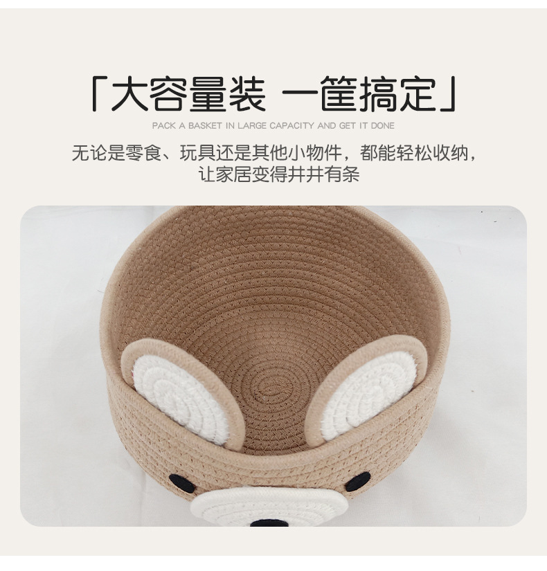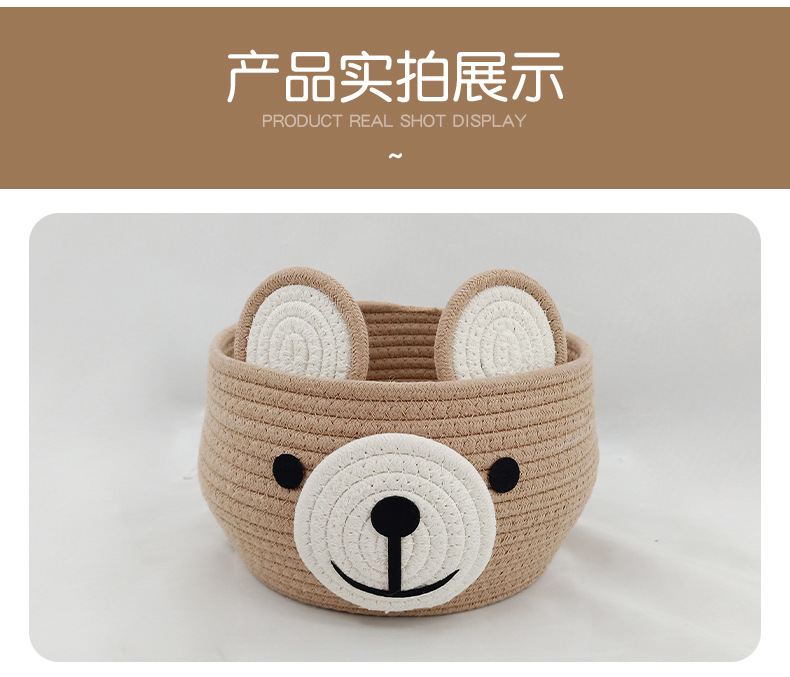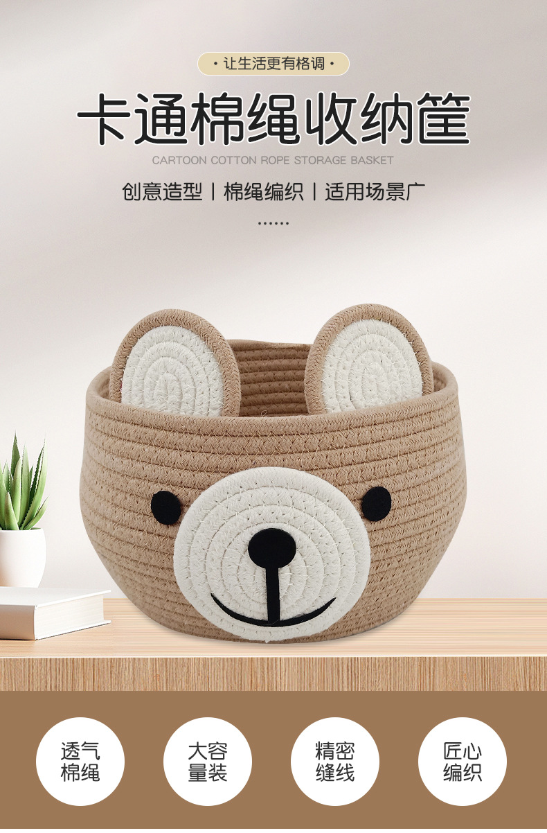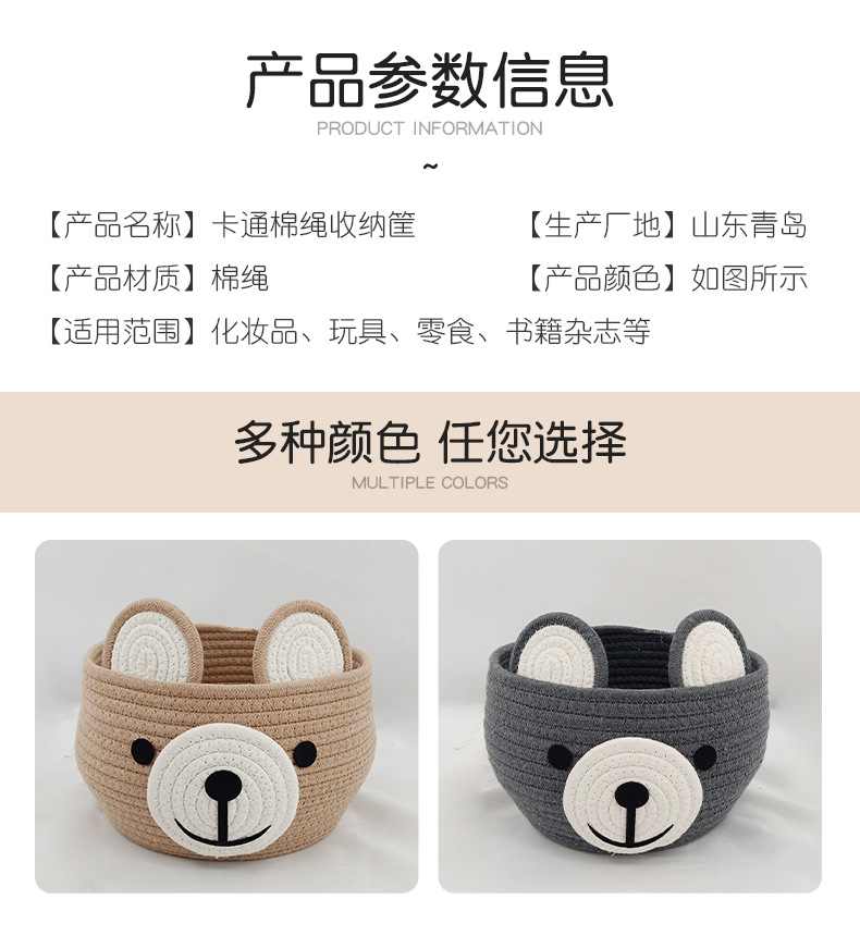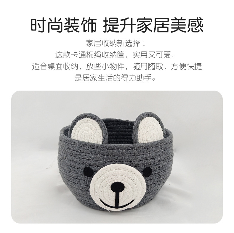 卡通收纳筐小熊灰色咖色收纳筐棉绳编织收纳筐桌面化妆品收纳篮子 English | 投诉