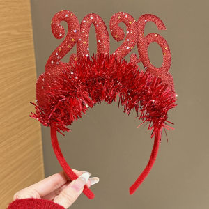 2026新年happy亮片发箍女款压发数字头箍氛围感装扮道具儿童发饰