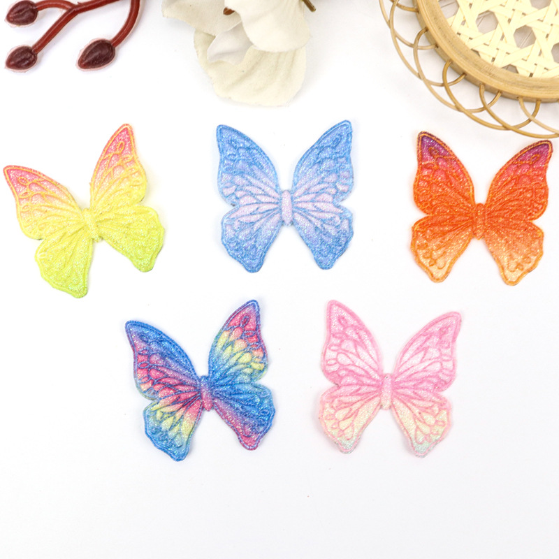 新款彩虹色蝴蝶配件超声波压花儿童发饰头饰饰品配件流行饰品配件