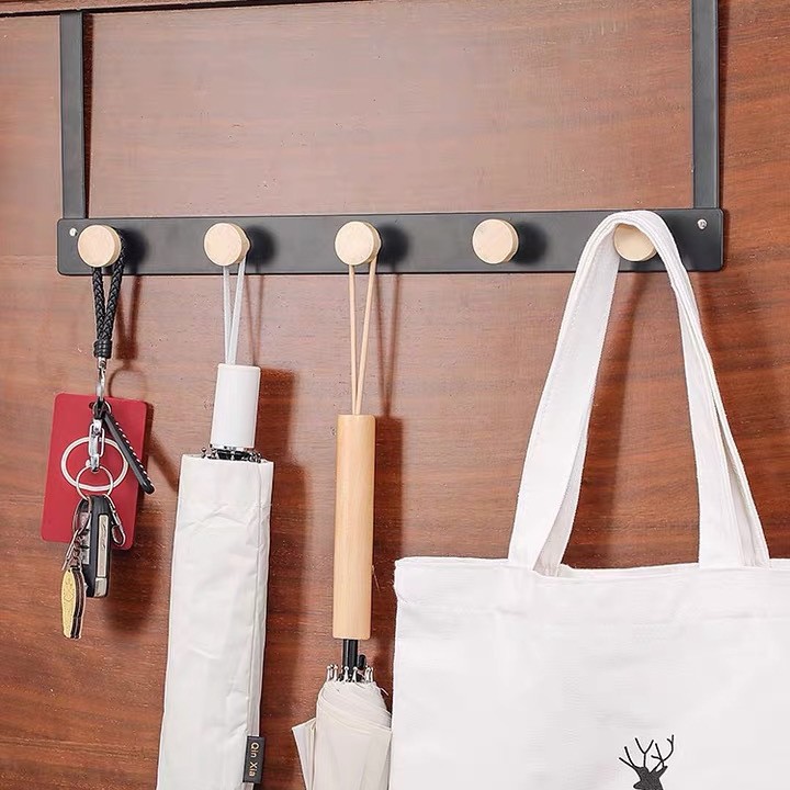 铁艺门后收纳架挂钩免打孔门背式排钩置物架挂衣架家用壁挂衣帽架