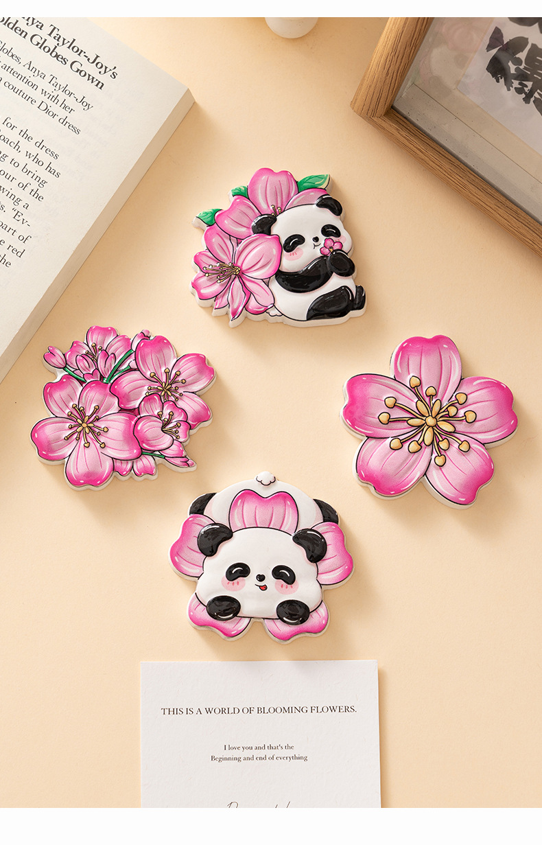 浪漫樱花熊猫冰箱贴浮雕树脂卡通磁性贴家居文创装饰品立体磁吸贴 English | 投诉