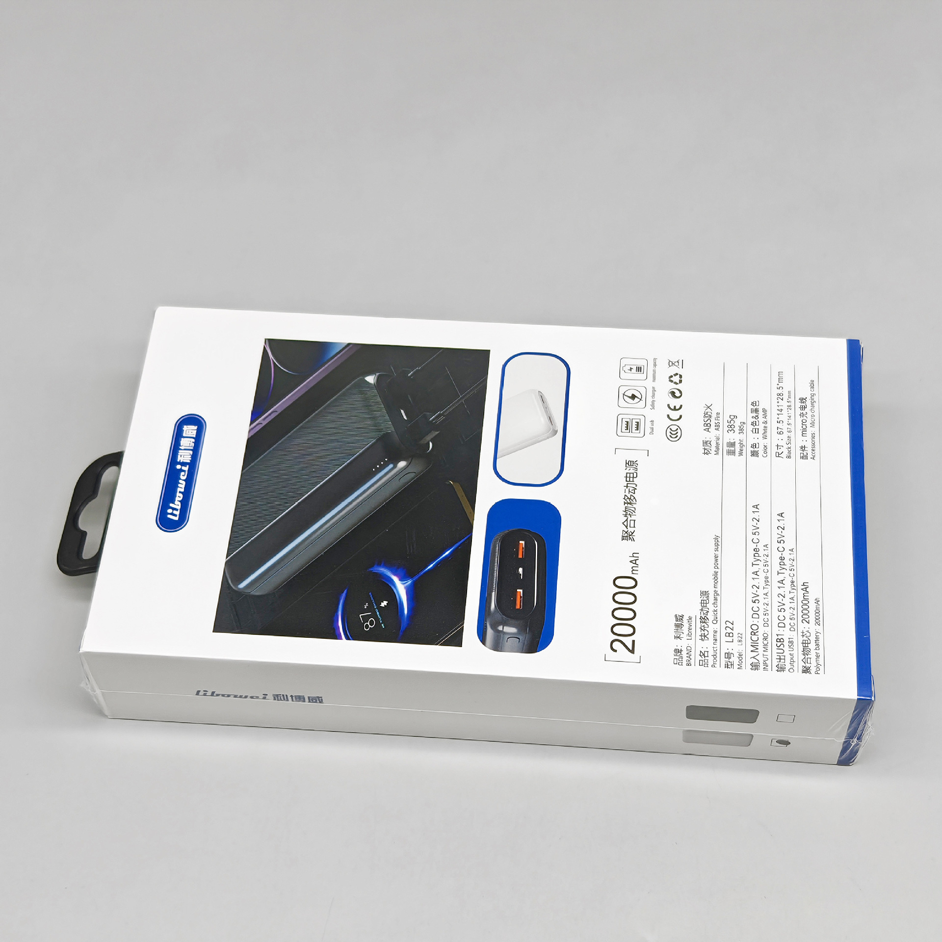 品牌: 利博威 功能: 多U口输出 分类: 充电宝 电池类型: 锂聚合物电池 外壳材质: 塑料 充电功率: 5W 电芯类型: 聚合物锂离子电芯 货号: LB21 尺寸: 带包装 是否跨境出口专供货源: 是 风格: 创意设计 生产厂商: 利博威 额定容量: 10000 输入电压: 220V 电池容量: 10000 最大输出功率: 12 电压: 5V 3C证书编号: 2024010914673691 是否专供外贸: 否 型号: LB21 重量: 0.5 kg/套