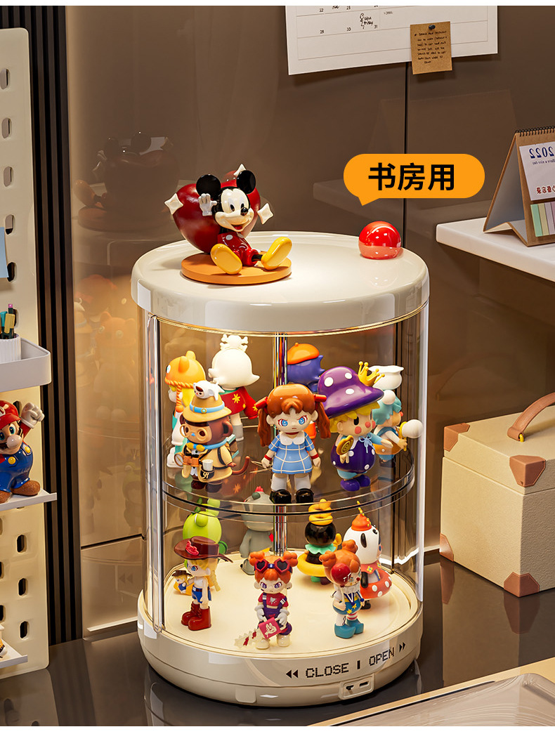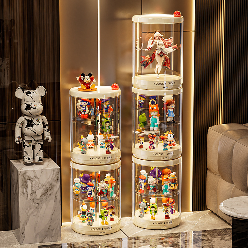 labubu手办展示盒防尘透明搪胶公仔玩具展示柜子旋转盲盒收纳盒子