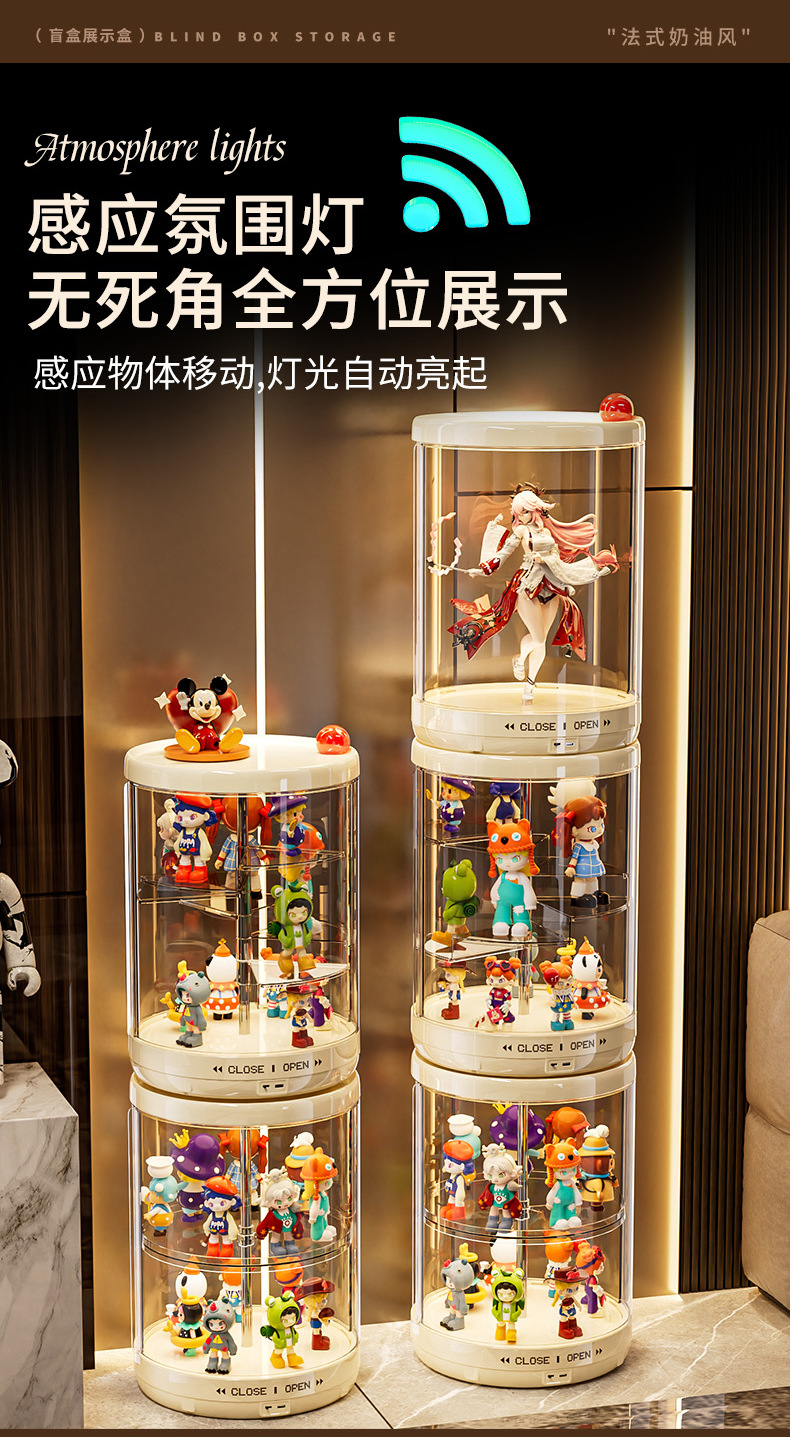 labubu手办展示盒防尘透明搪胶公仔玩具展示柜子旋转盲盒收纳盒子 English | 投诉