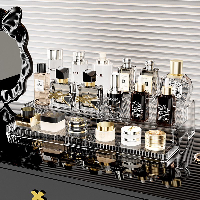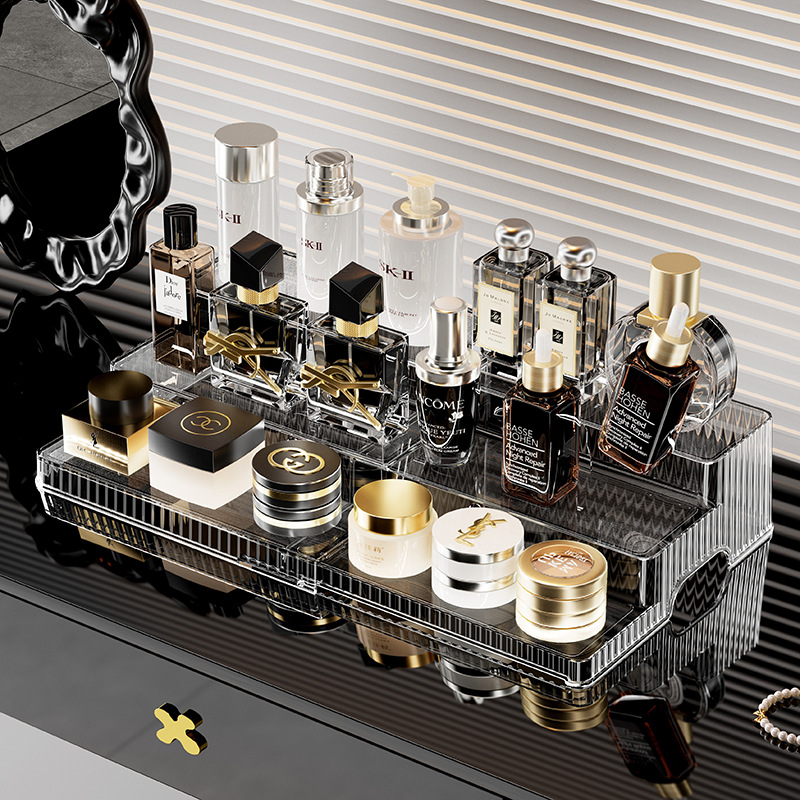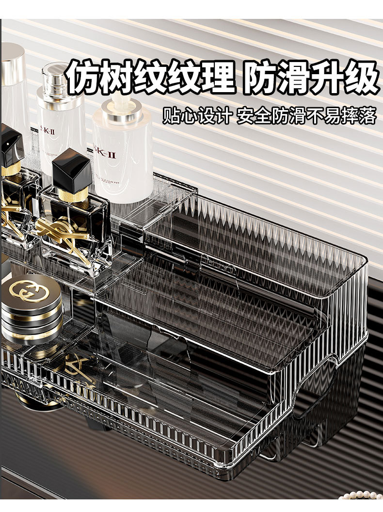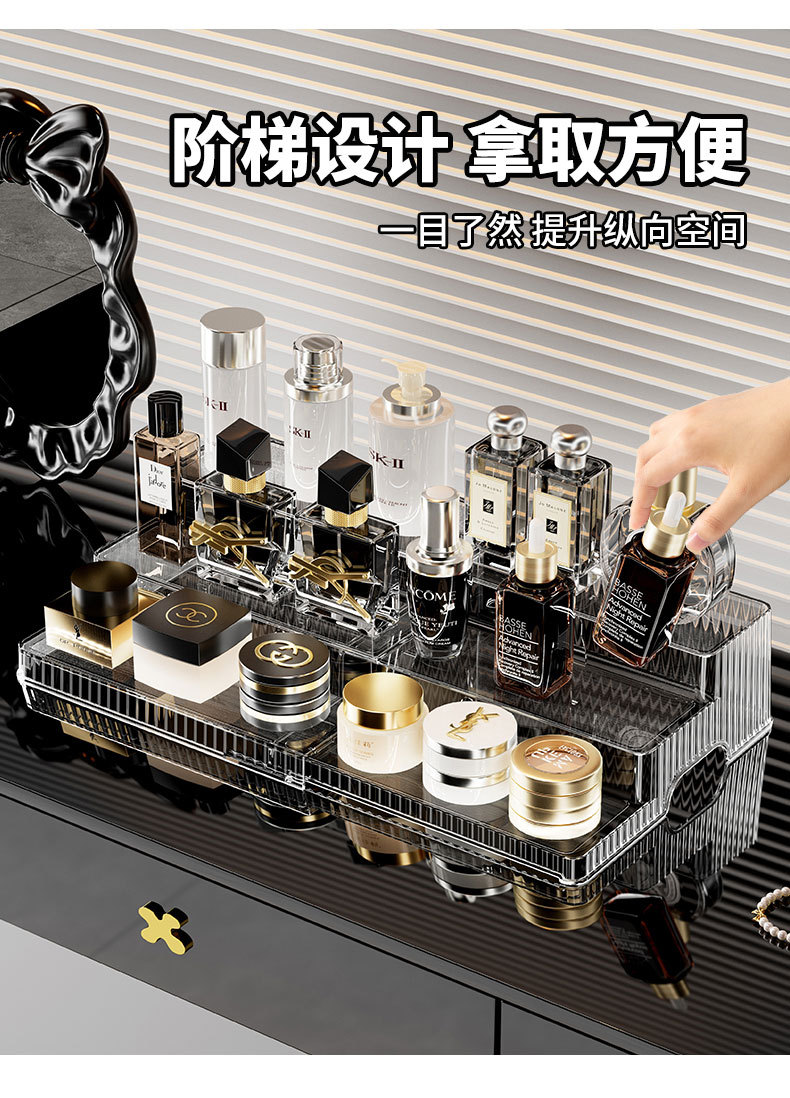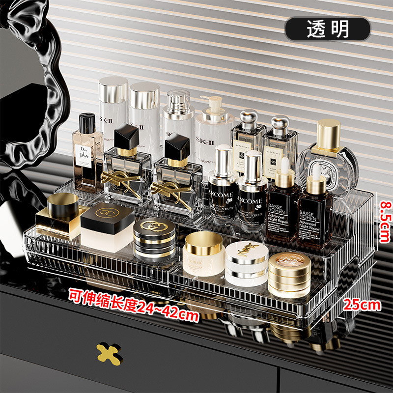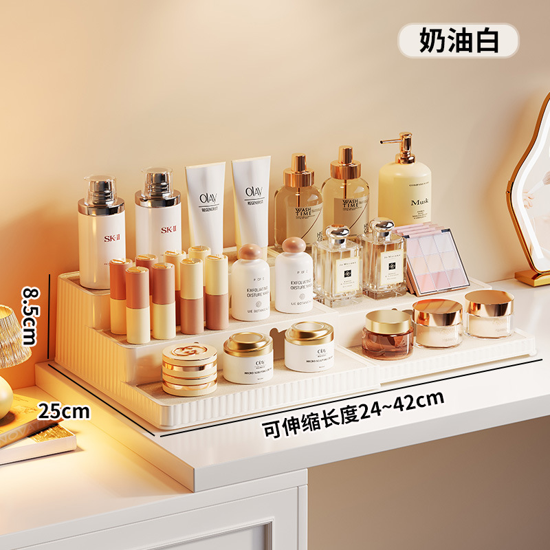 桌面大容量伸缩置物架双层可伸缩阶梯式化妆收纳整理一体式收纳架 English | 投诉