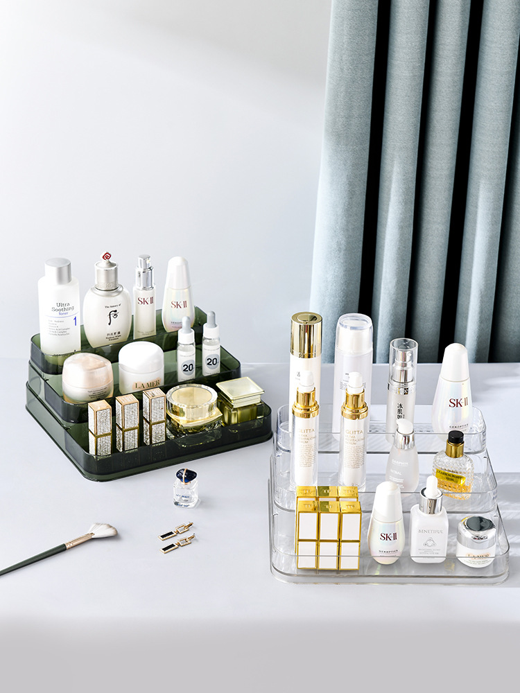 梳妆台化妆品置物架多层阶梯展示架透明塑料轻奢香水桌面置物架子 English | 投诉