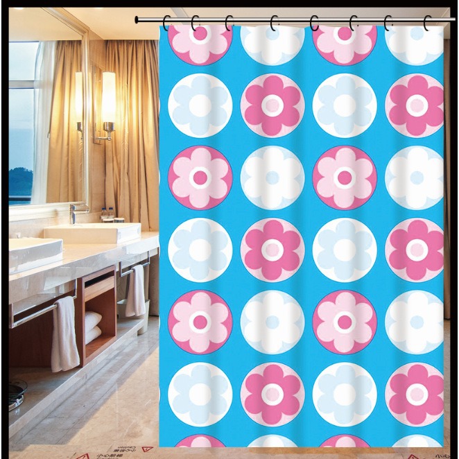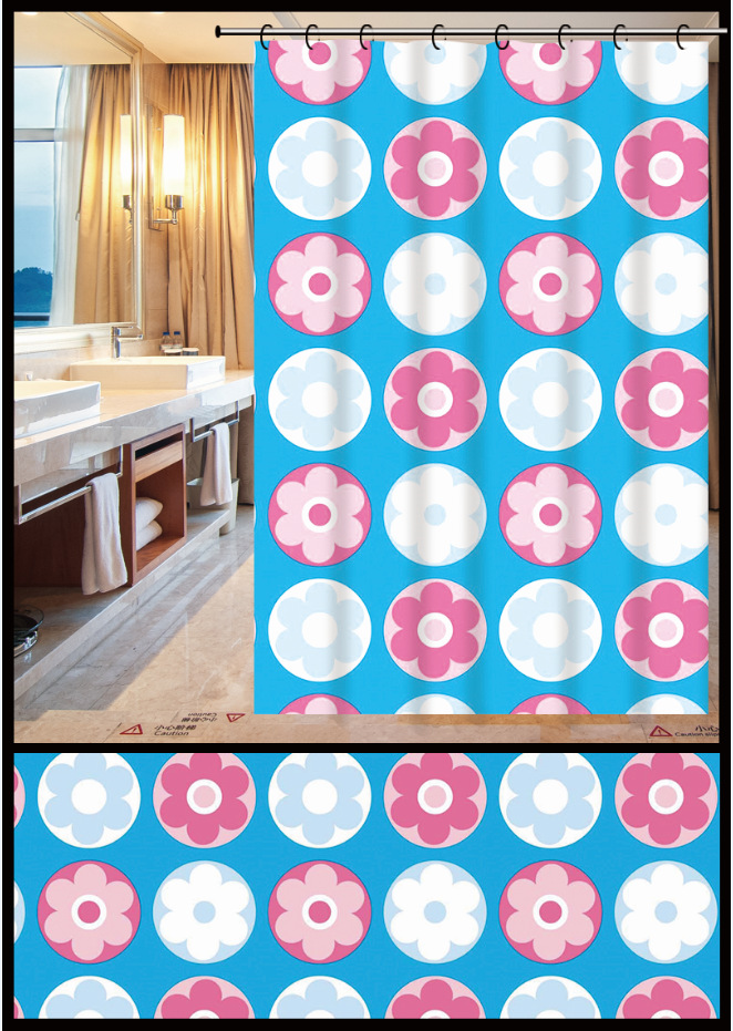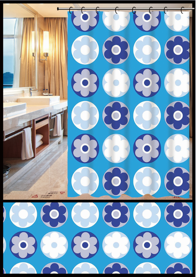 peva小花朵浴帘防水柔软隔断帘子卫生间装饰帘免打孔送环ins风 English | 投诉