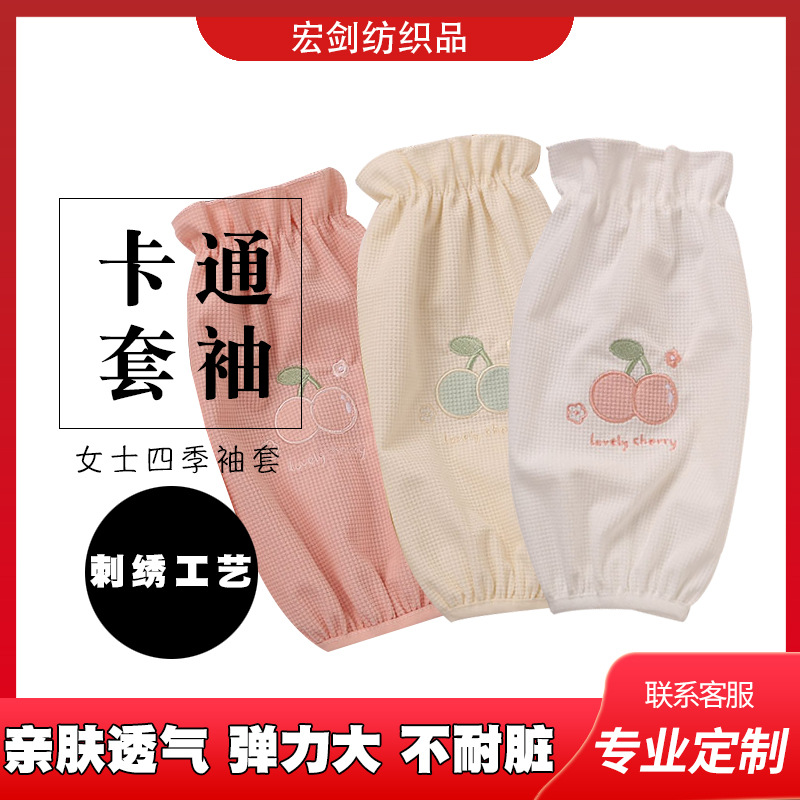 新款秋冬长款袖套刺绣防污护袖工作可爱卡通护袖羽绒服防污套袖 English | 投诉