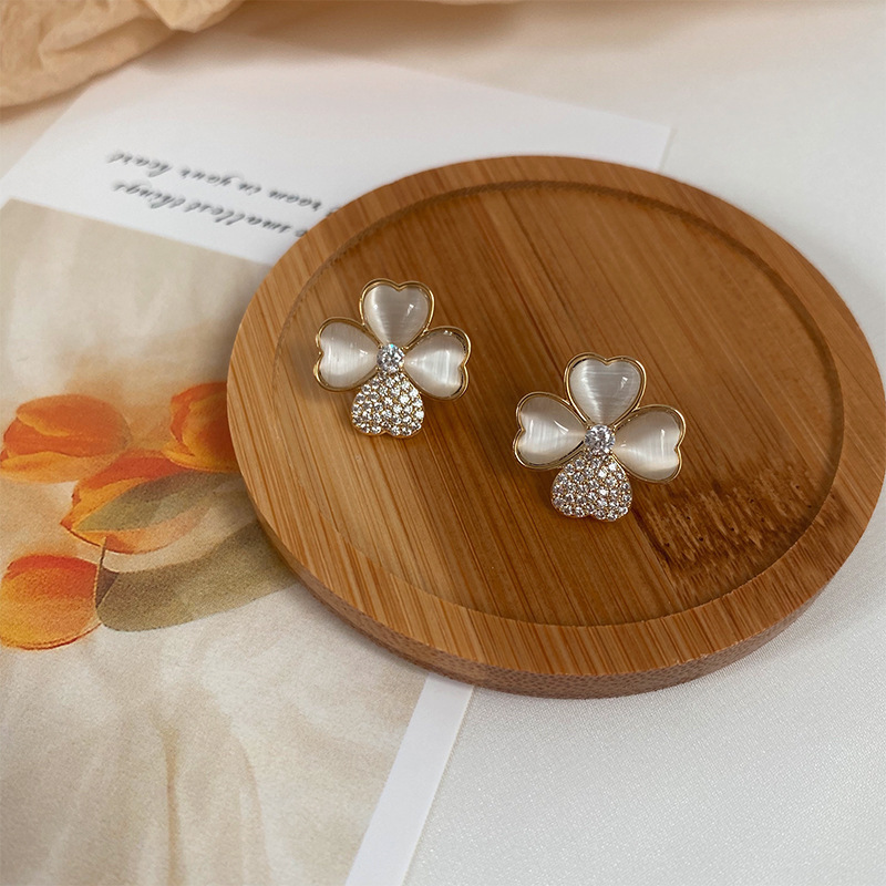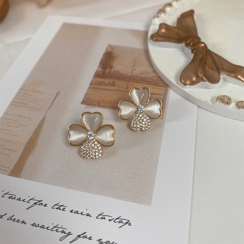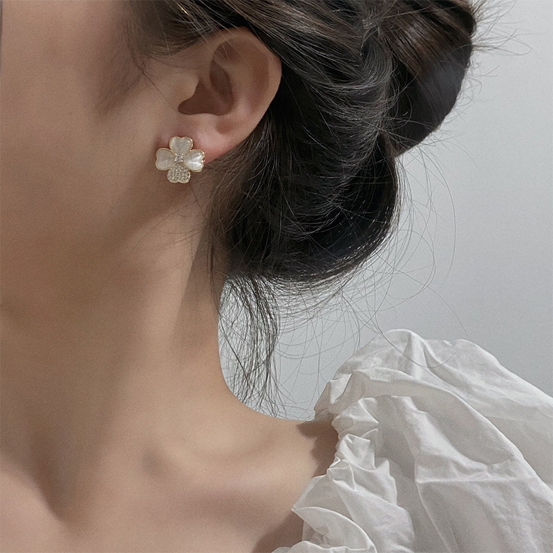 韩版四叶草微镶精致高级感耳钉个性时尚饰品女小众冷淡风耳环批发 English | 投诉
