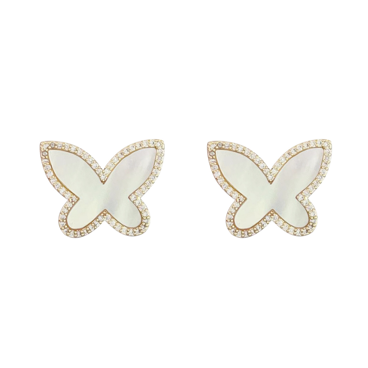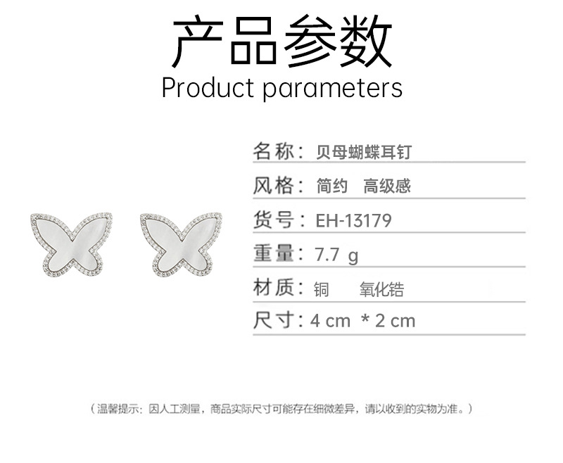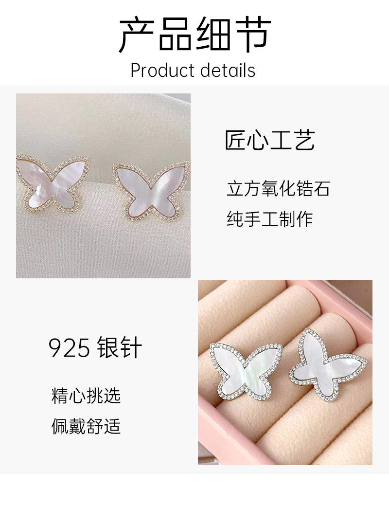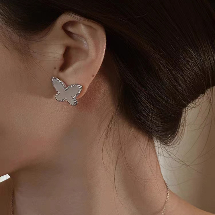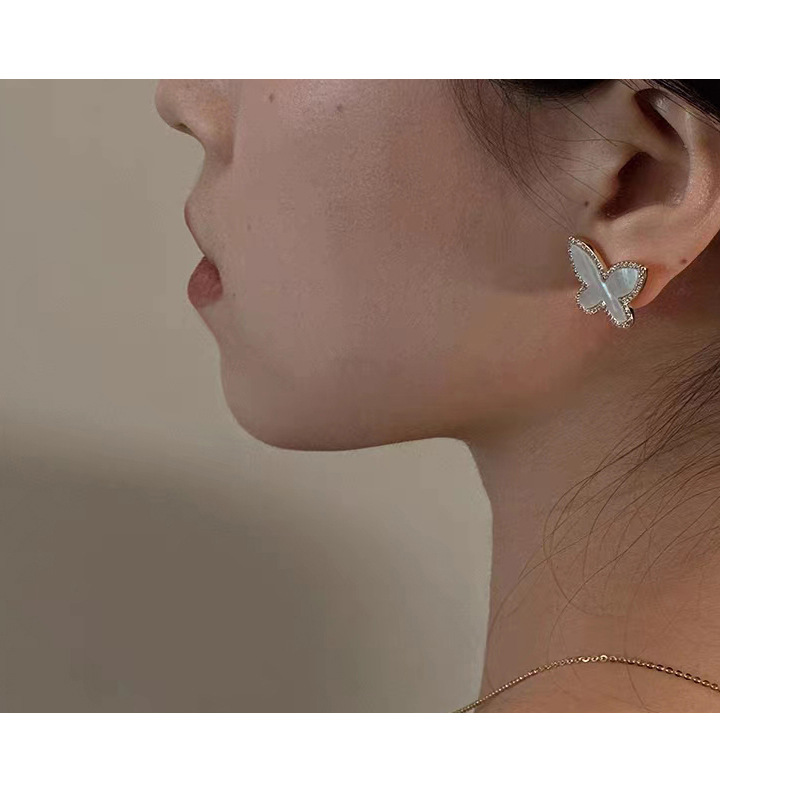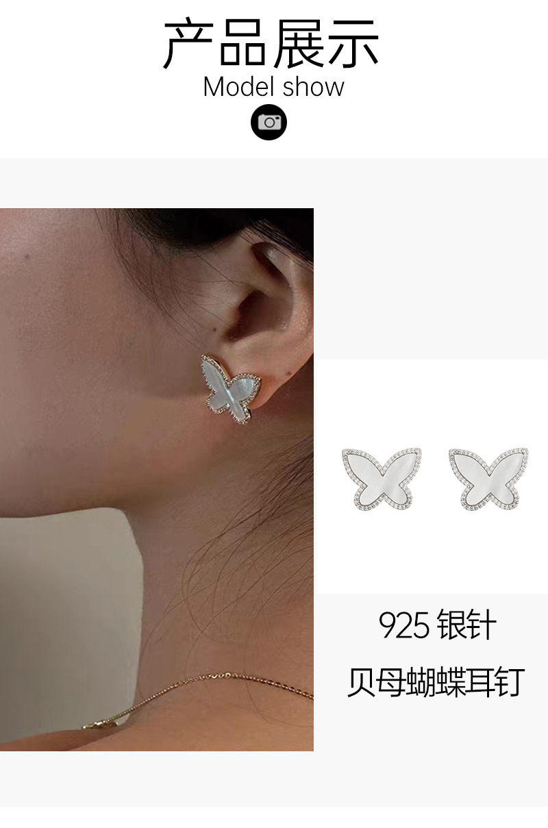 贝母蝴蝶耳钉女2023新款简约设计高级感冷淡风耳环气质耳饰 English | 投诉