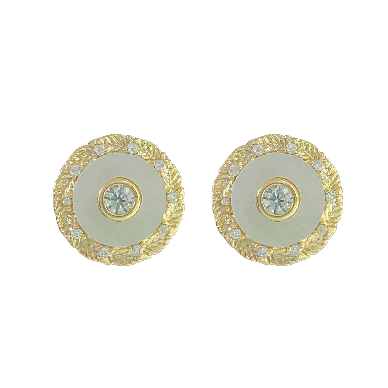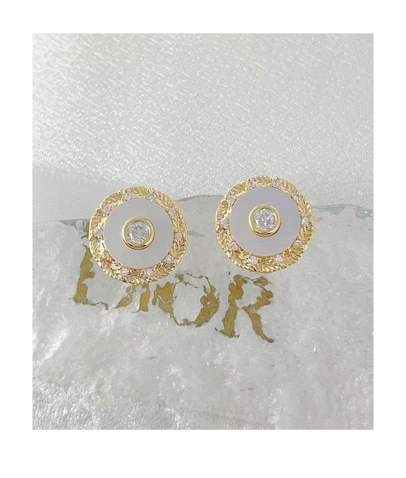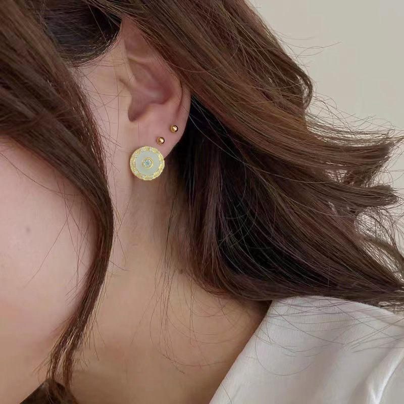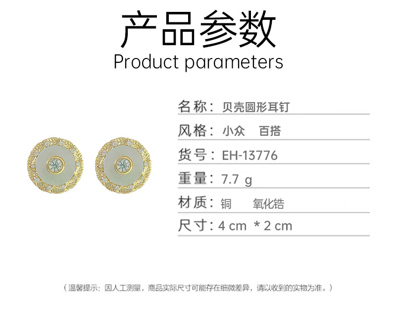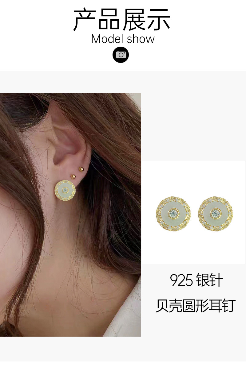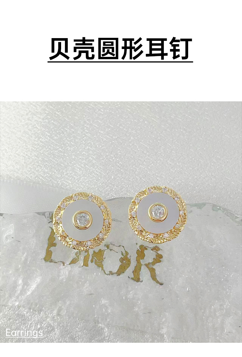 秋冬新款耳饰女小众百搭设计圆形纽扣贝壳锆石耳环高级感耳钉 English | 投诉