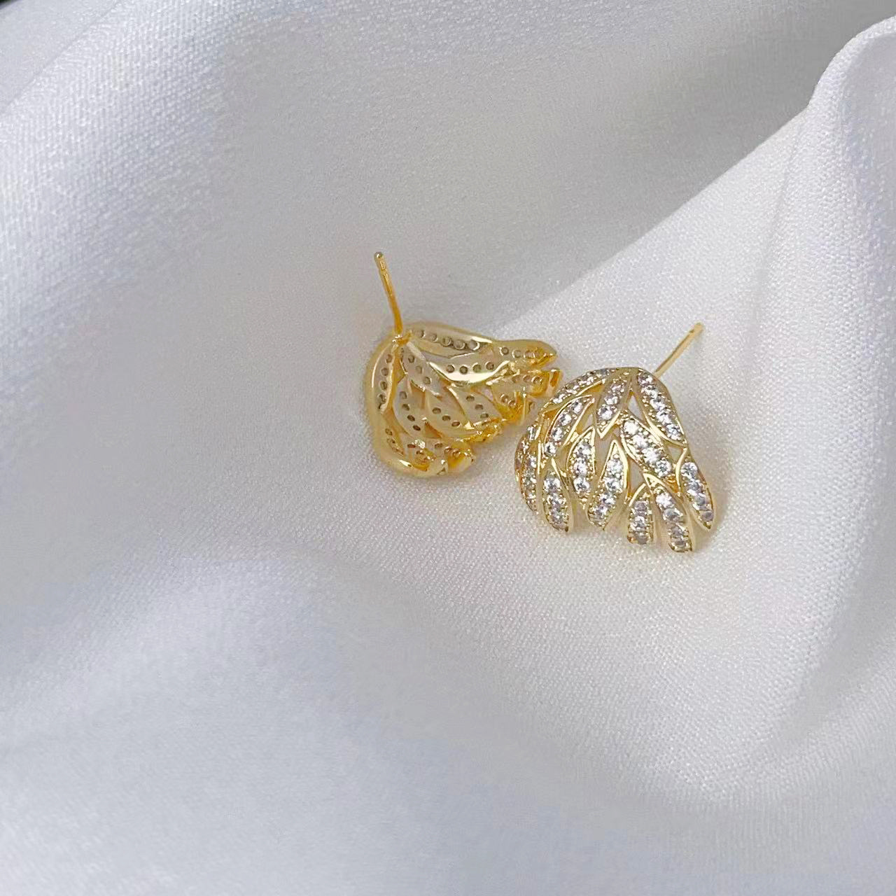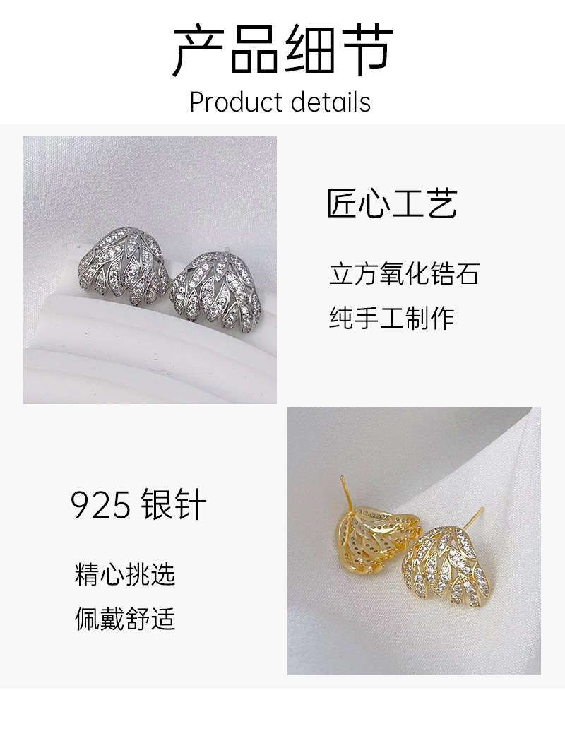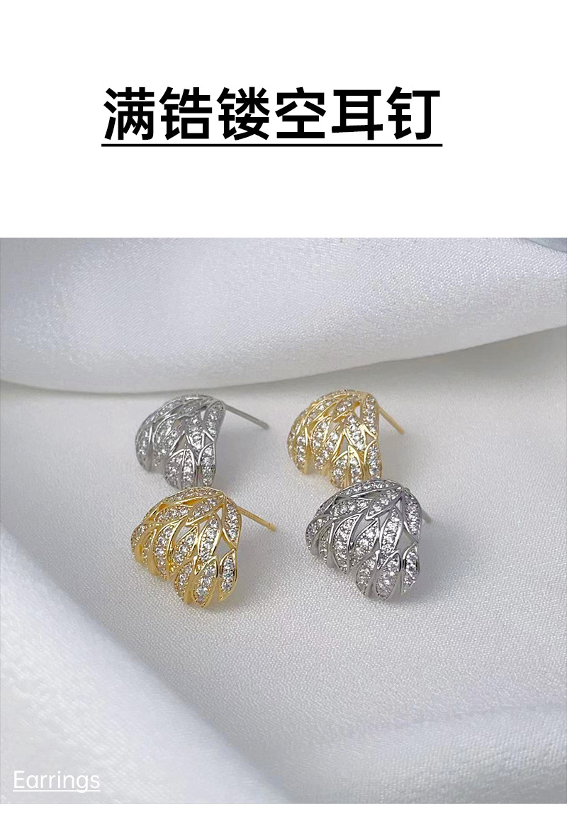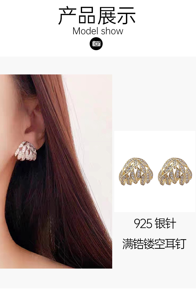 叶子耳钉轻奢满锆镂空独特名媛设计感S925银针耳环耳饰品 English | 投诉