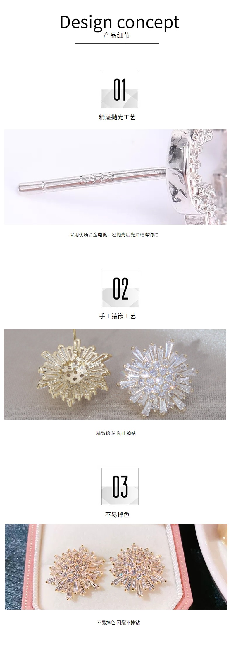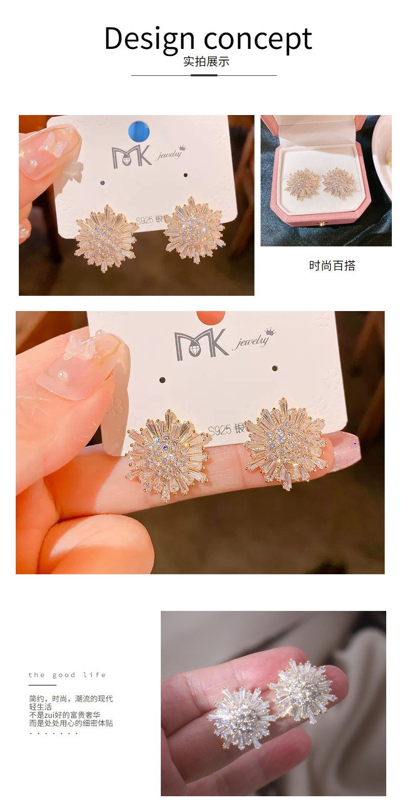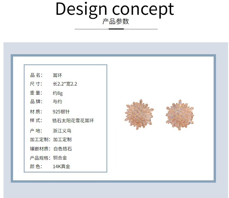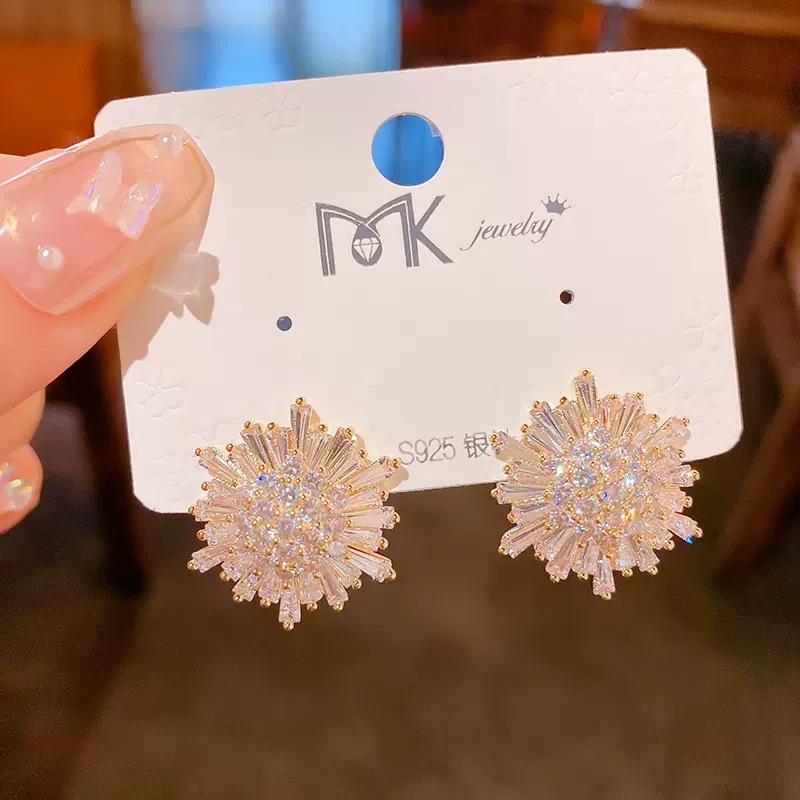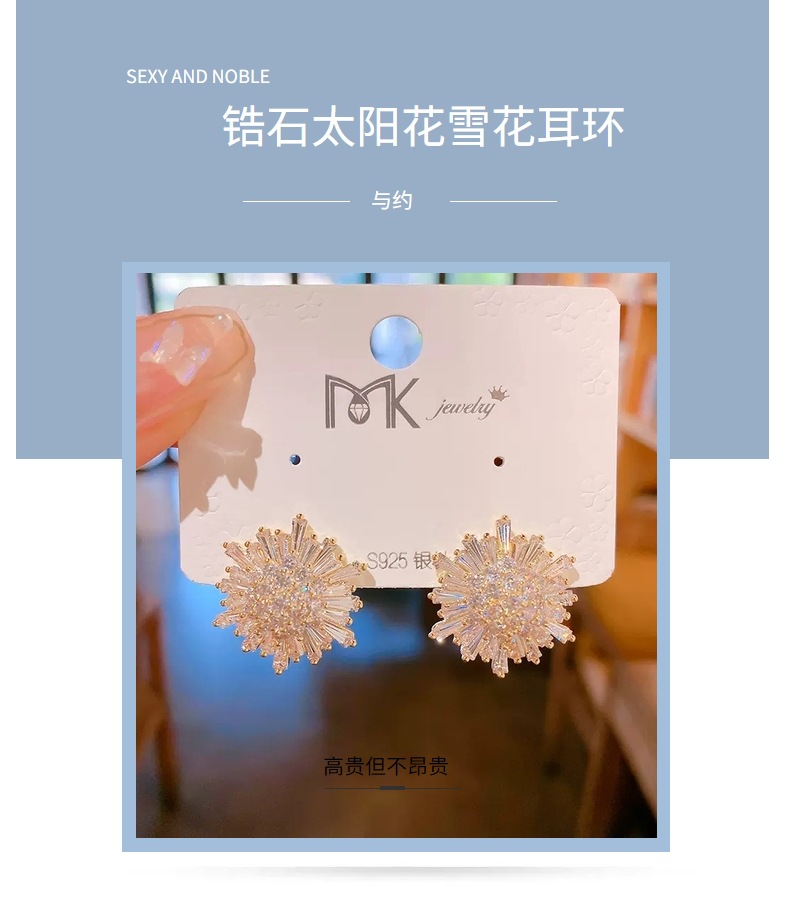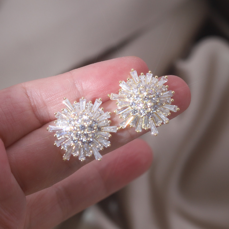 2022新款东大门锆石太阳花雪花耳钉气质时尚气质高级感耳饰女批发 English | 投诉