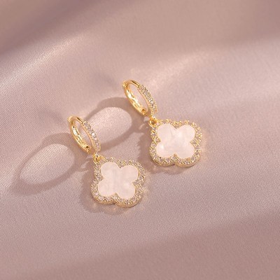 2022年新款925银针抖音四叶草复古闪钻网红高级感耳钉小香风耳扣 English | 投诉