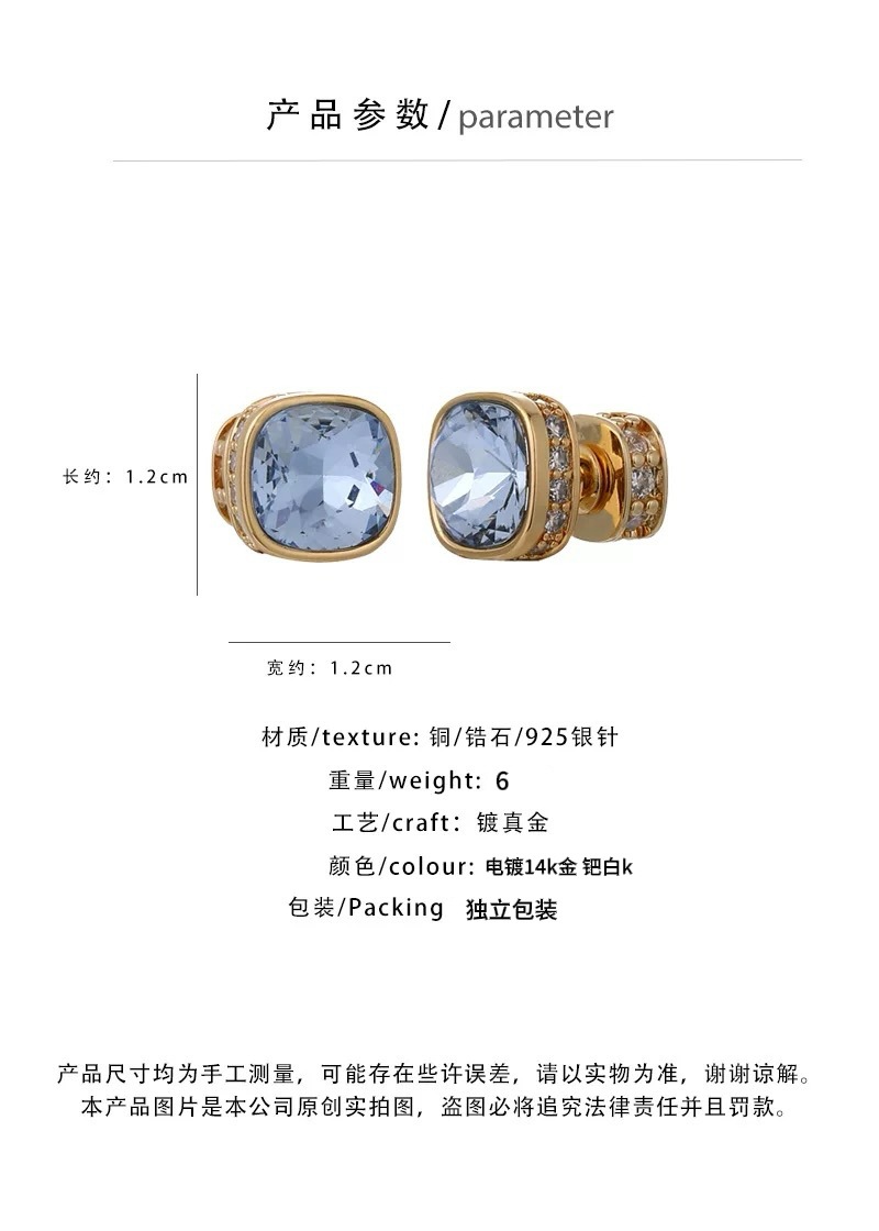 轻奢简约方形复古锆石耳钉女通勤干练时尚百搭一款两戴几何耳饰 English | 投诉
