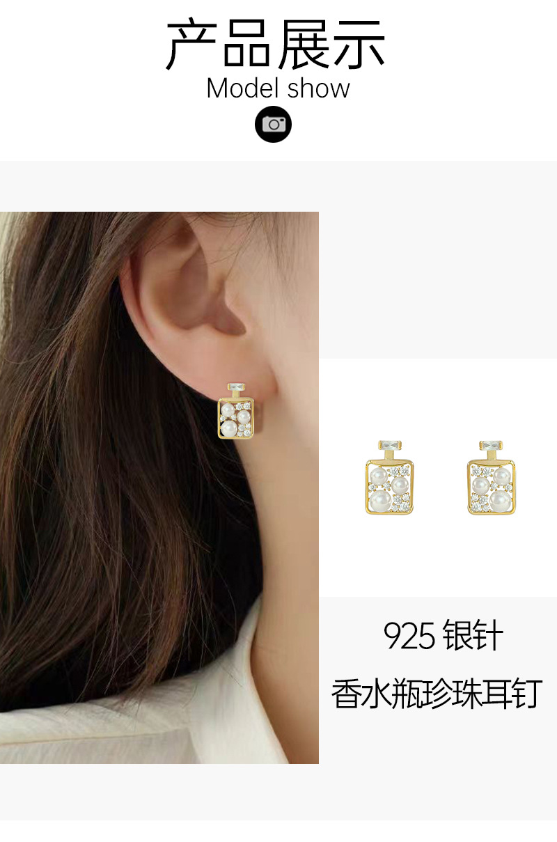 2024新款香水瓶珍珠个性气质耳钉女925银针百搭高级感设计耳饰 English | 投诉
