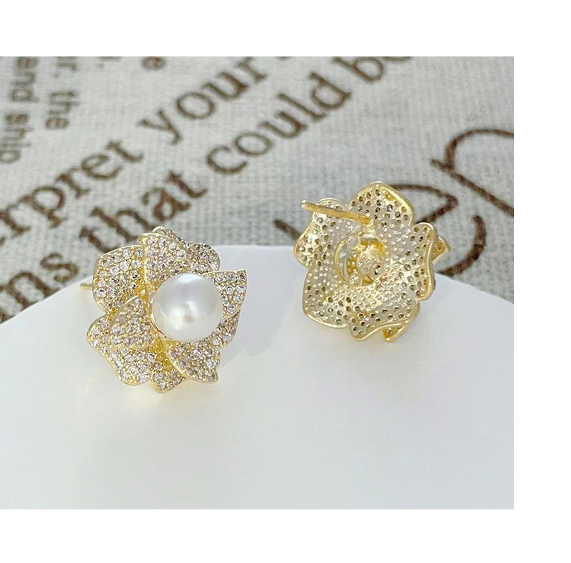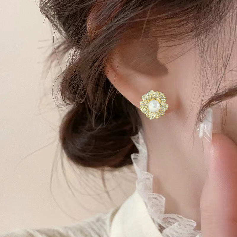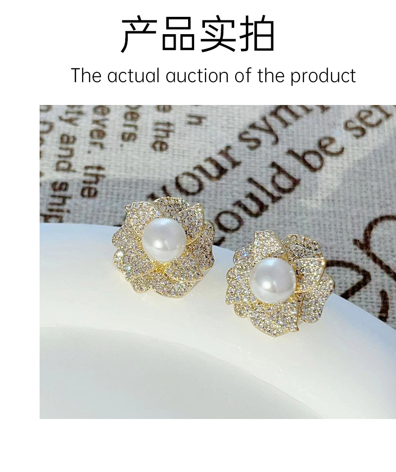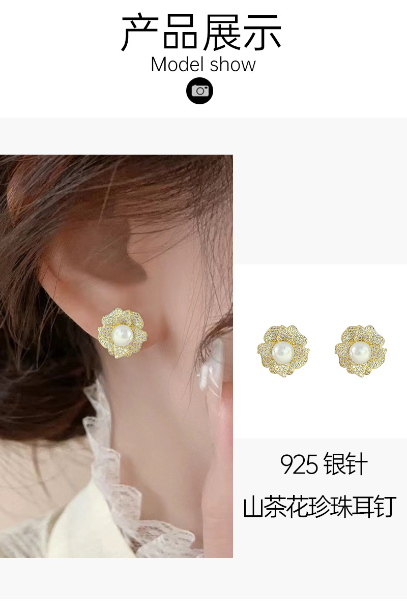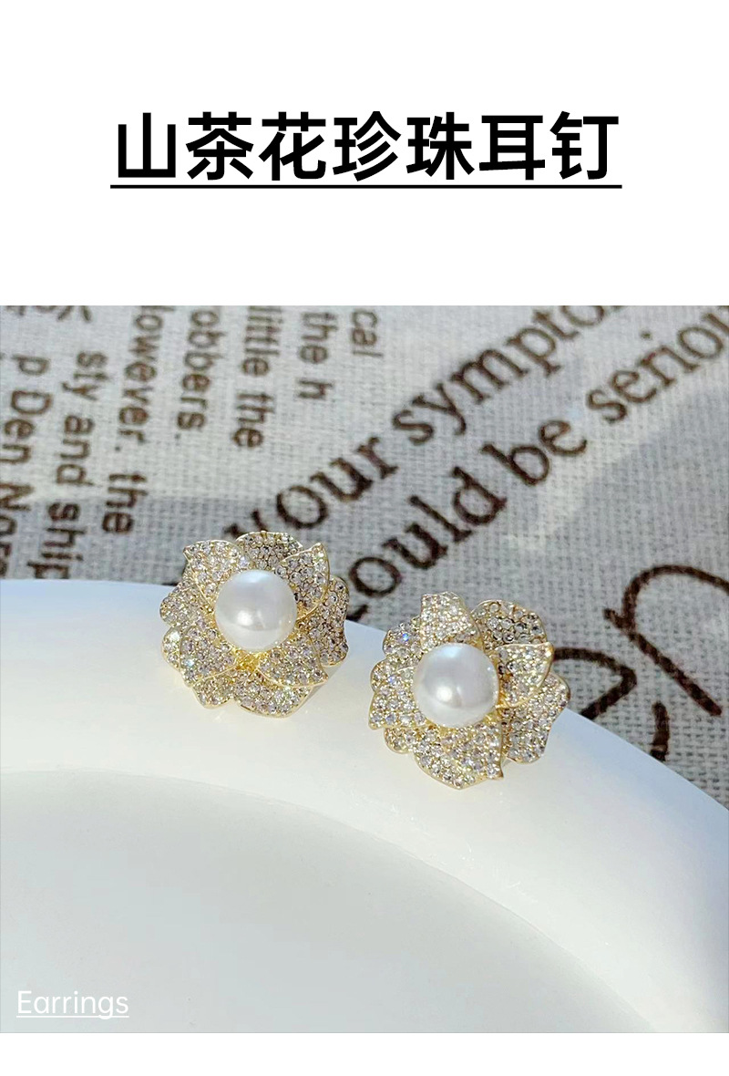 2024年新款微镶锆石珍珠耳钉山茶花时尚耳环女百搭设计气质耳饰 English | 投诉