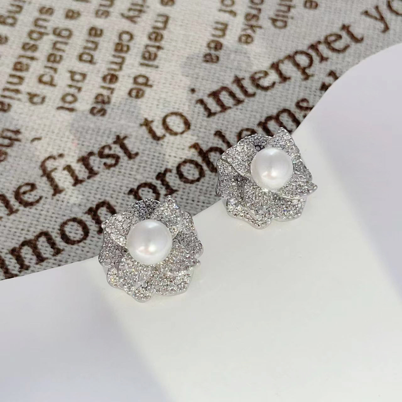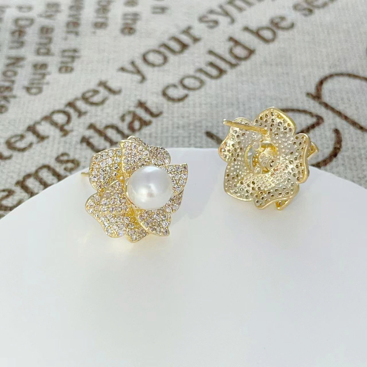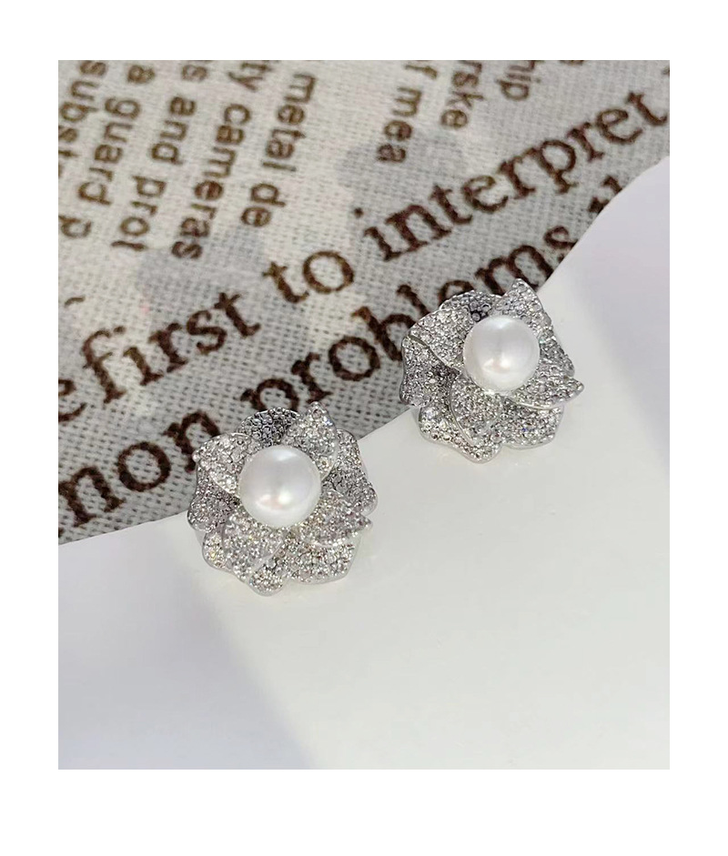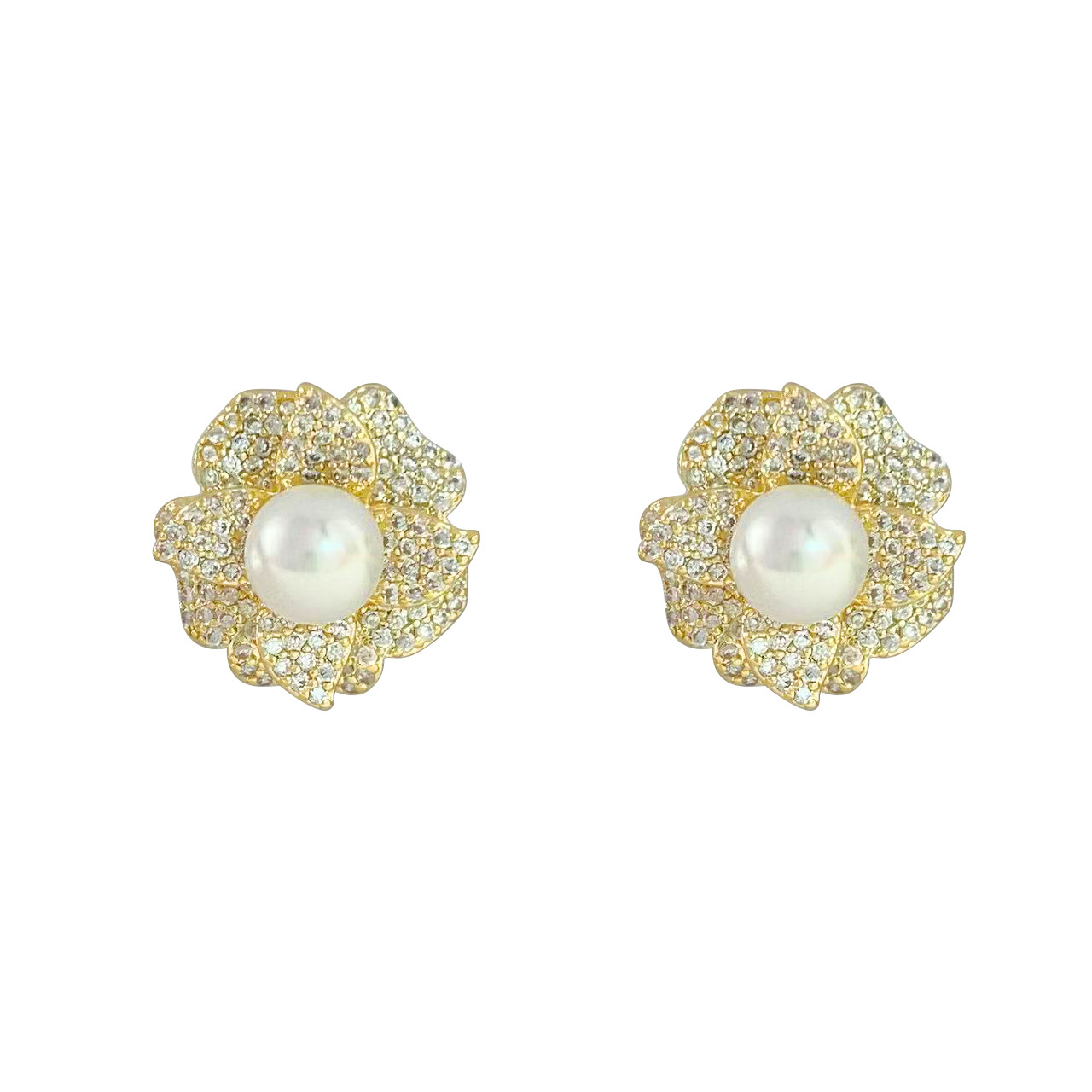2024年新款微镶锆石珍珠耳钉山茶花时尚耳环女百搭设计气质耳饰 English | 投诉