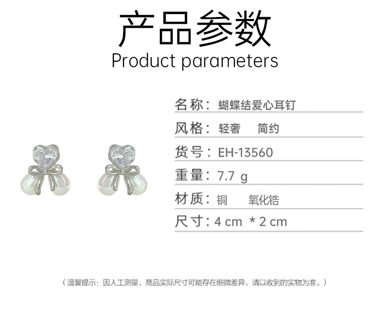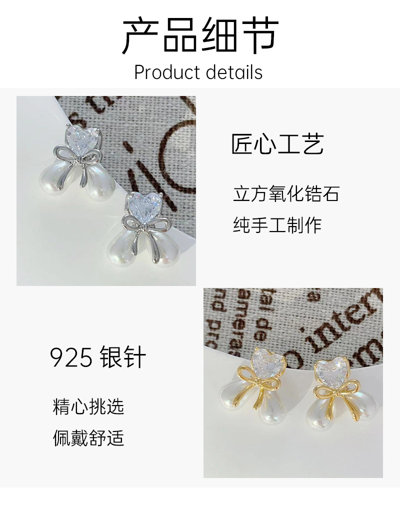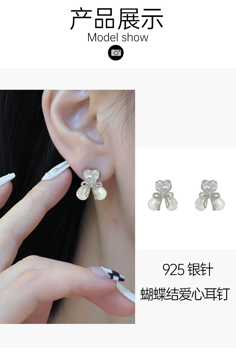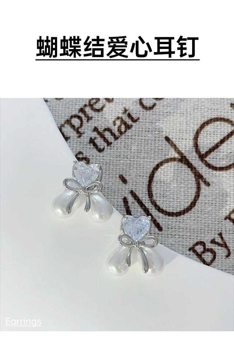爱心蝴蝶结微镶锆石珍珠耳钉女小众精致轻奢设计感简约小巧耳饰 English | 投诉