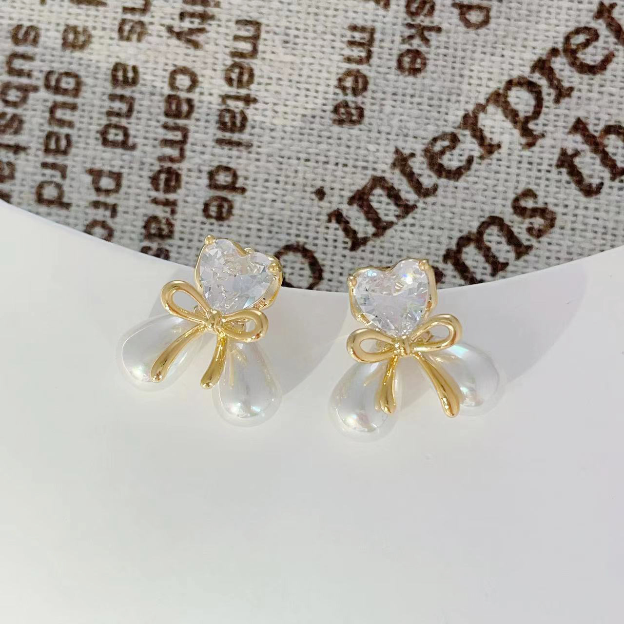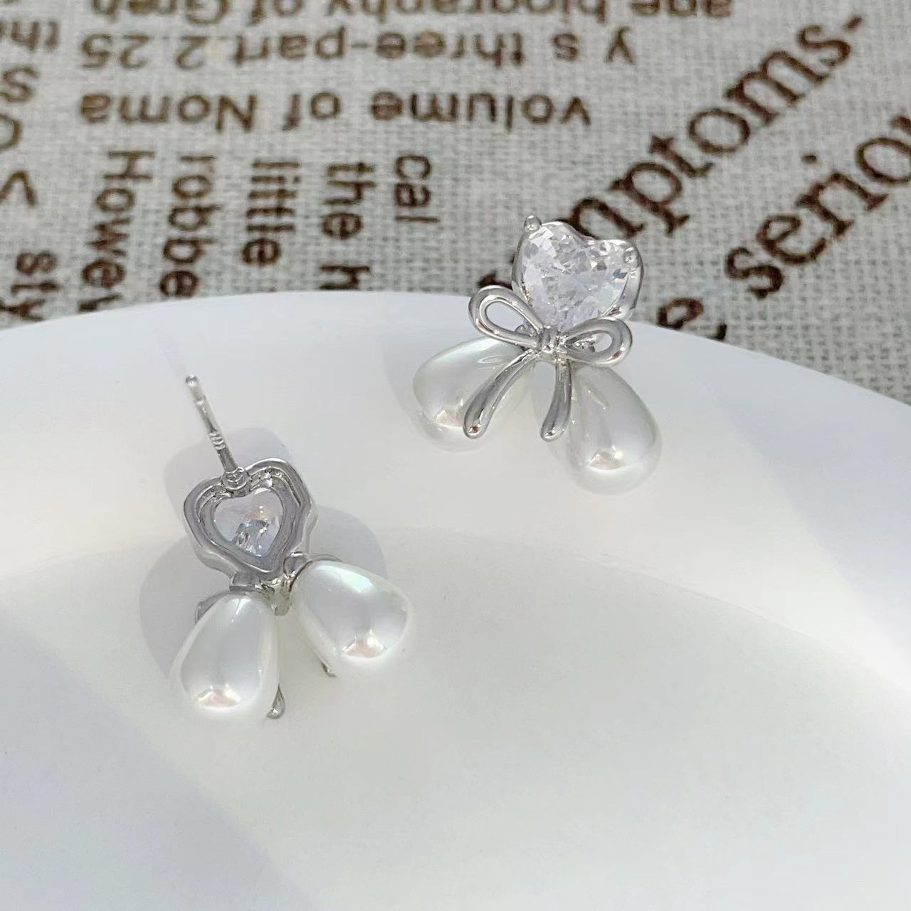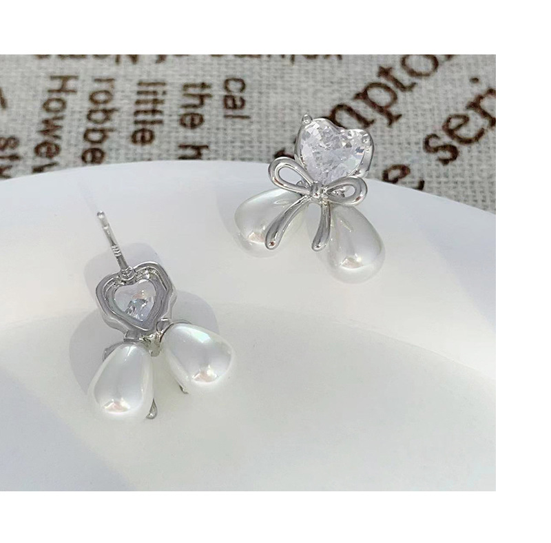 爱心蝴蝶结微镶锆石珍珠耳钉女小众精致轻奢设计感简约小巧耳饰 English | 投诉