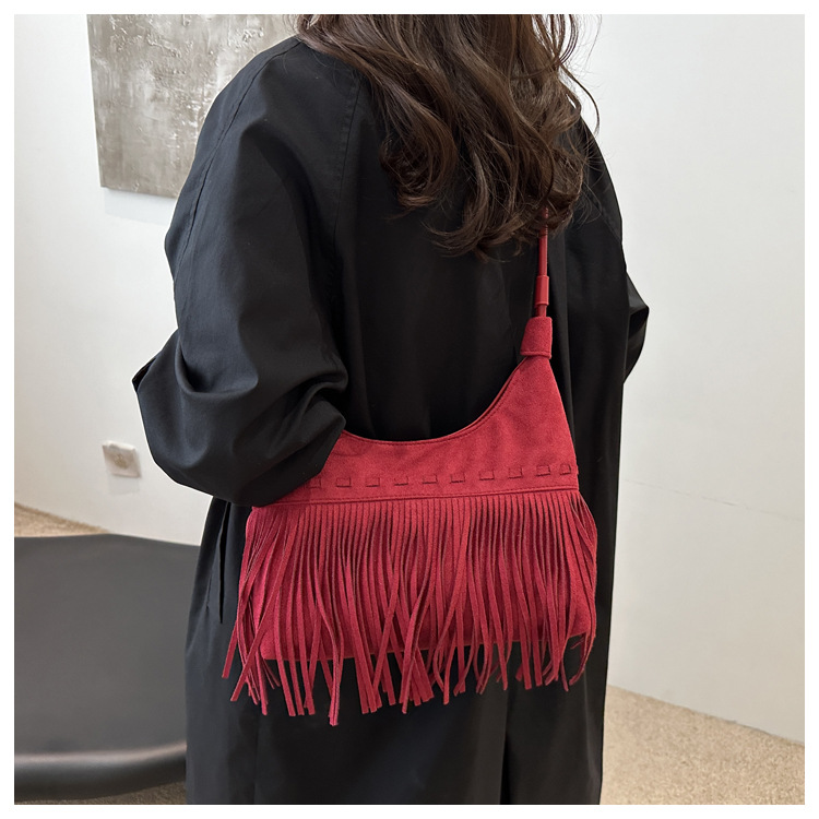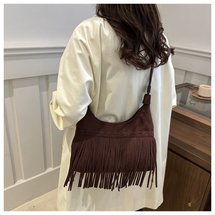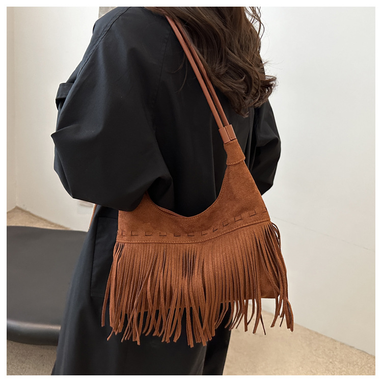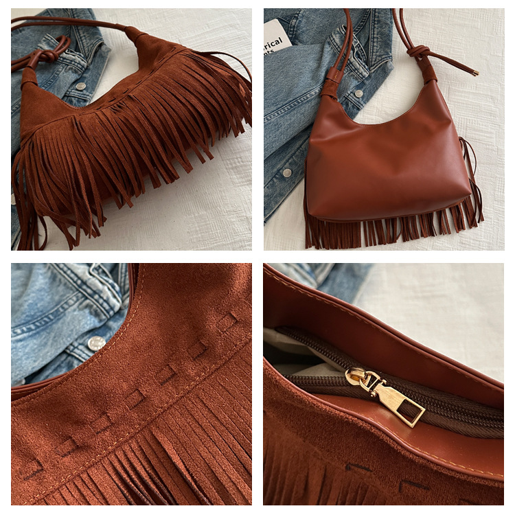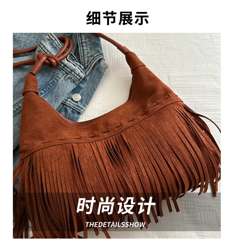 小众牛仔风腋下包包女秋冬2024新款单肩斜挎包波西米亚复古流苏包 English | 投诉