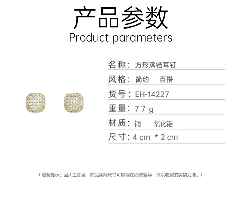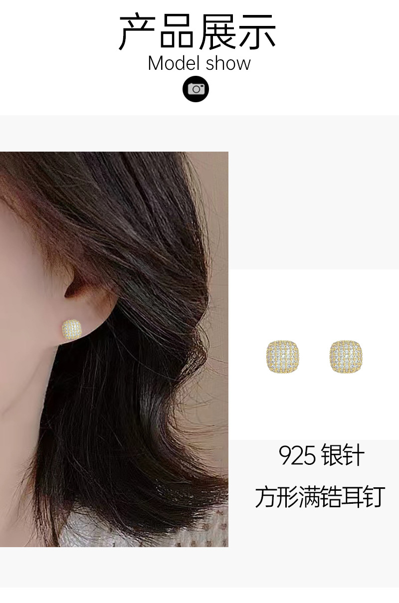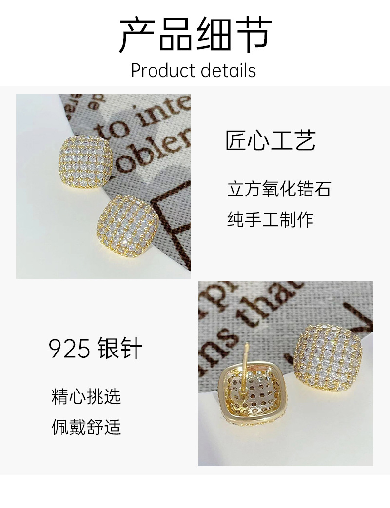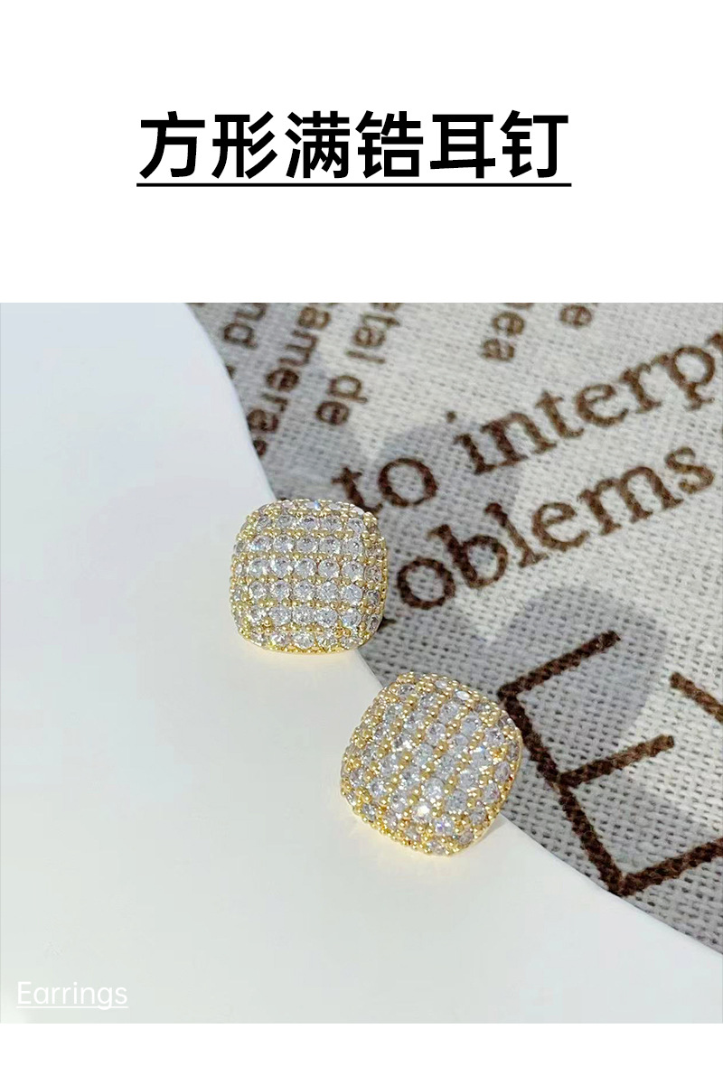 几何方形微镶锆石耳钉2024年新款潮简约气质耳环百搭小众设计耳饰 English | 投诉