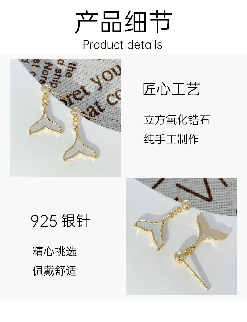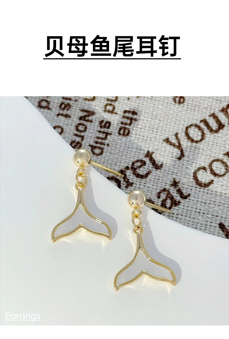 贝母鱼尾耳环2024年新款潮网红同款耳钉925银针小众百搭设计耳饰 English | 投诉