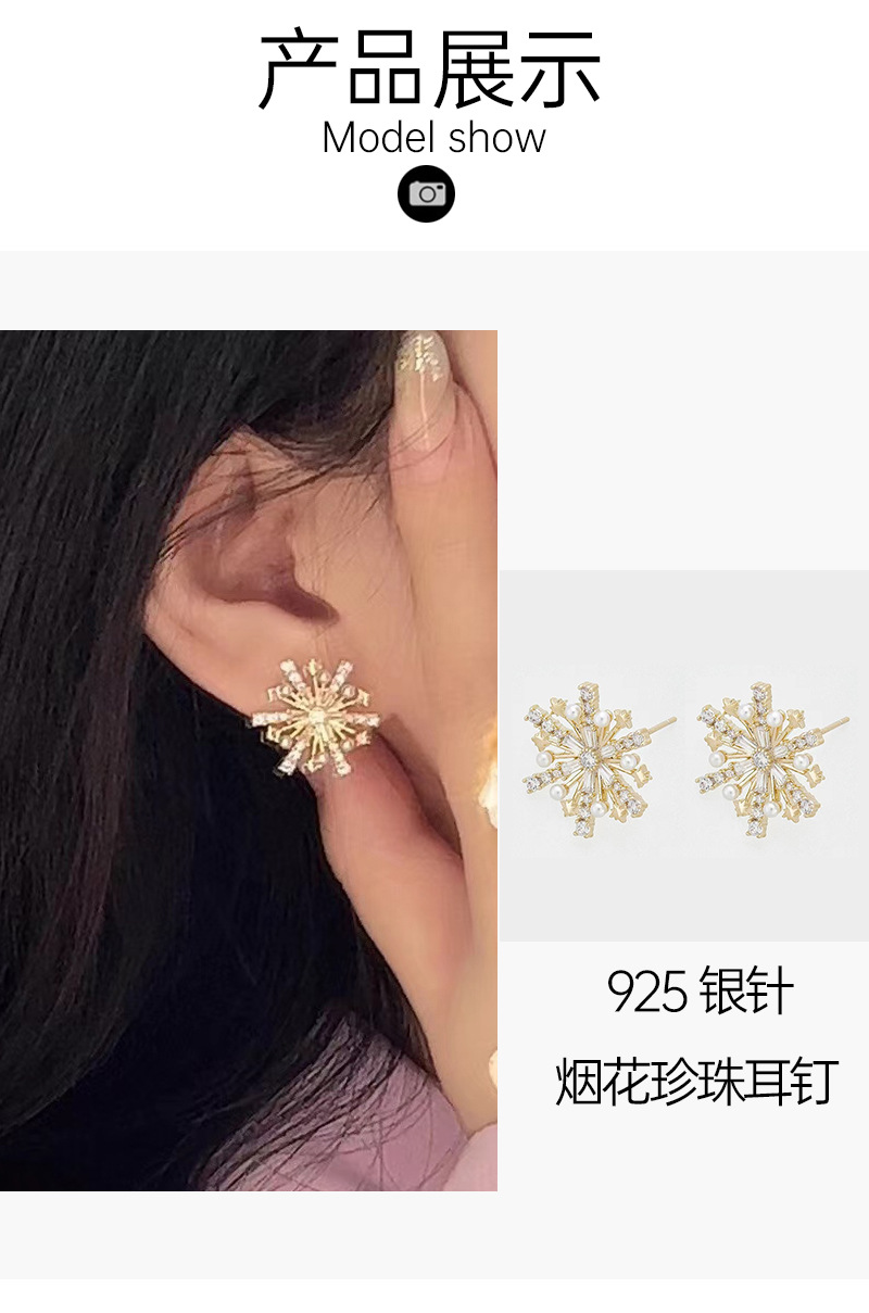 s925银针烟花珍珠耳钉女2024年新款爆款高级感轻奢百搭设计耳饰 English | 投诉