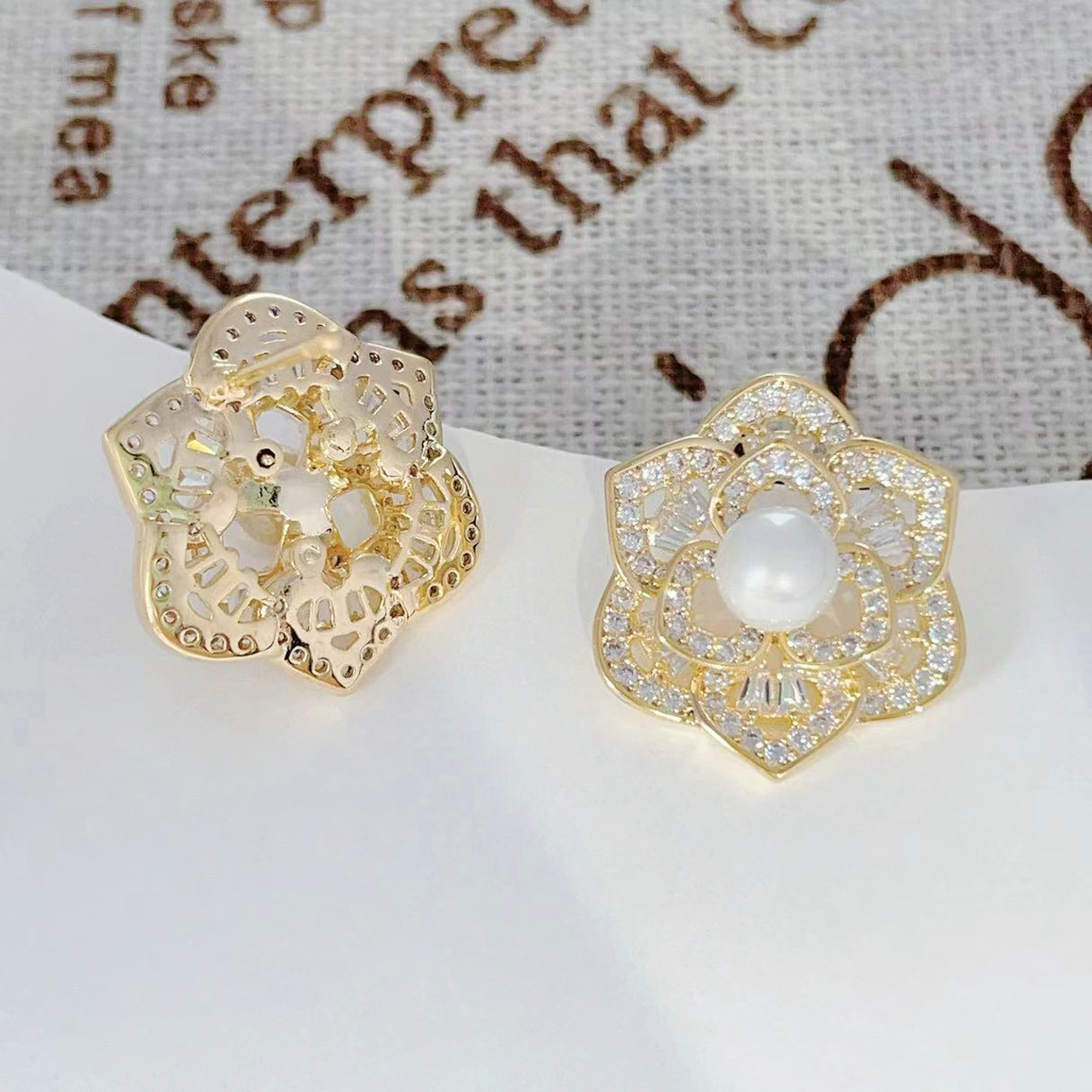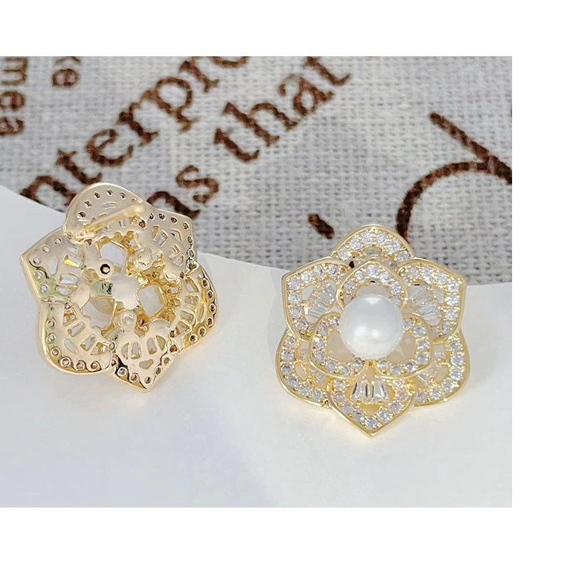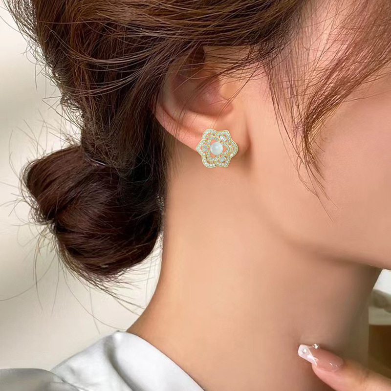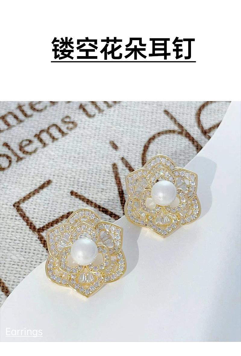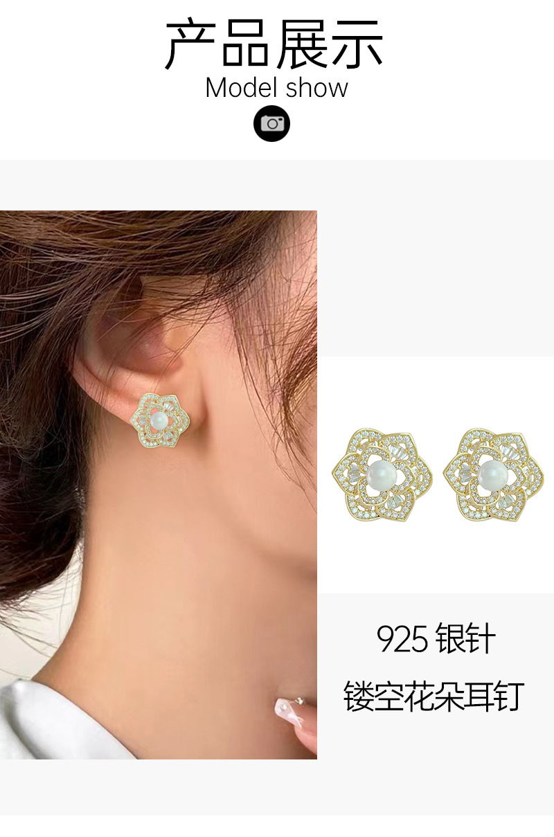 微镶镂空花朵耳环2024年新款潮高级感耳钉女925银针气质珍珠耳饰 English | 投诉