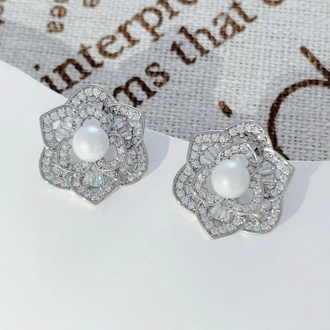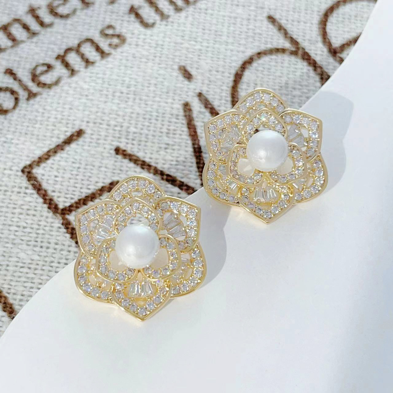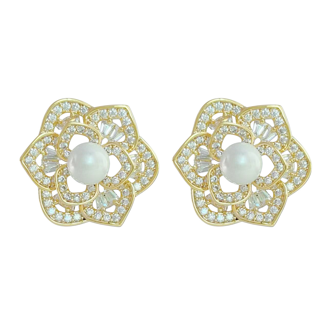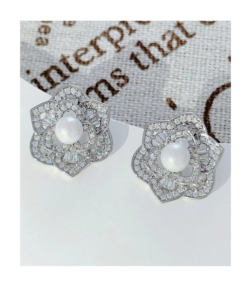 微镶镂空花朵耳环2024年新款潮高级感耳钉女925银针气质珍珠耳饰 English | 投诉