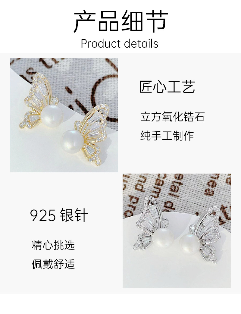 百搭气质珍珠蝴蝶耳钉2024年气质精致耳环微镶锆石轻奢风耳饰女 English | 投诉