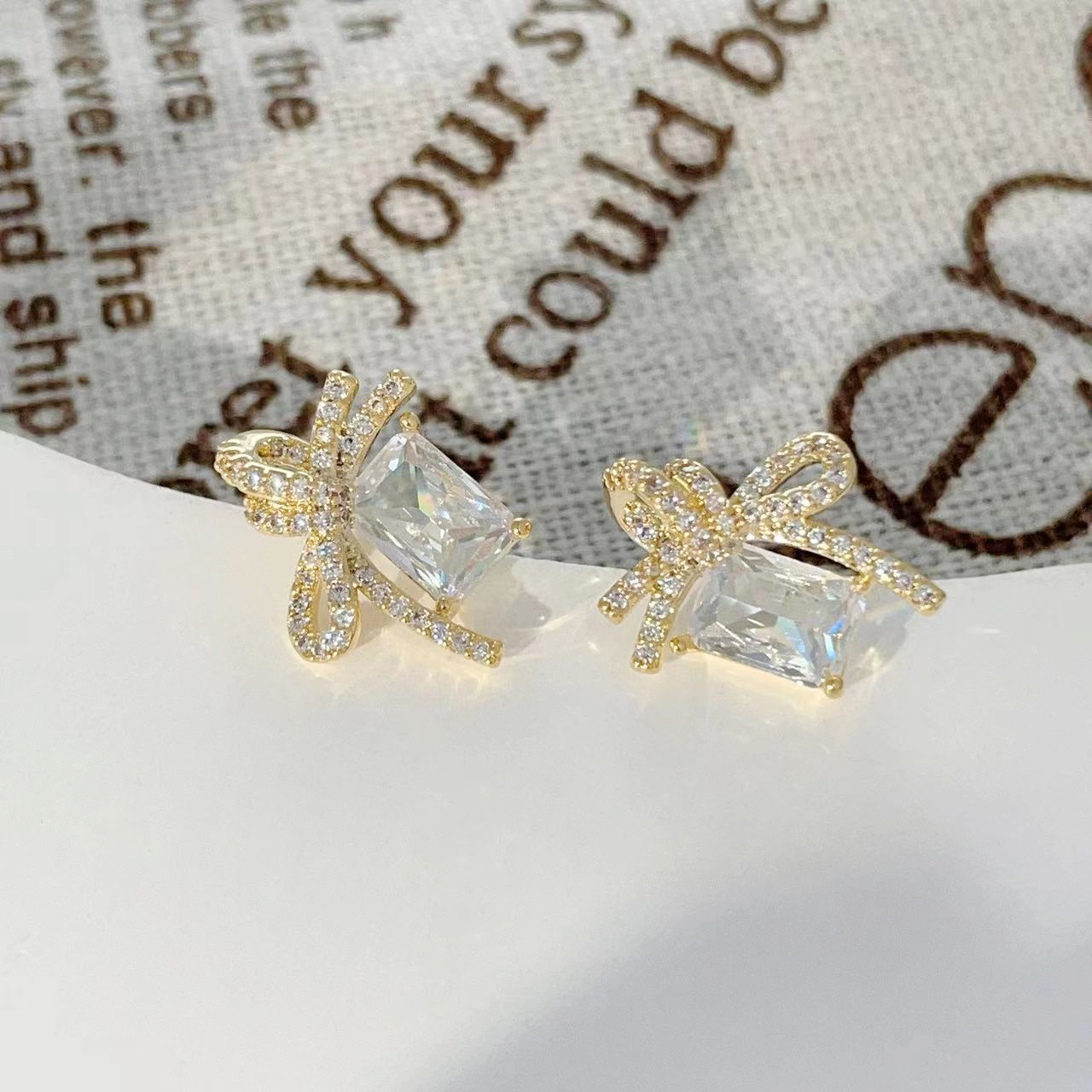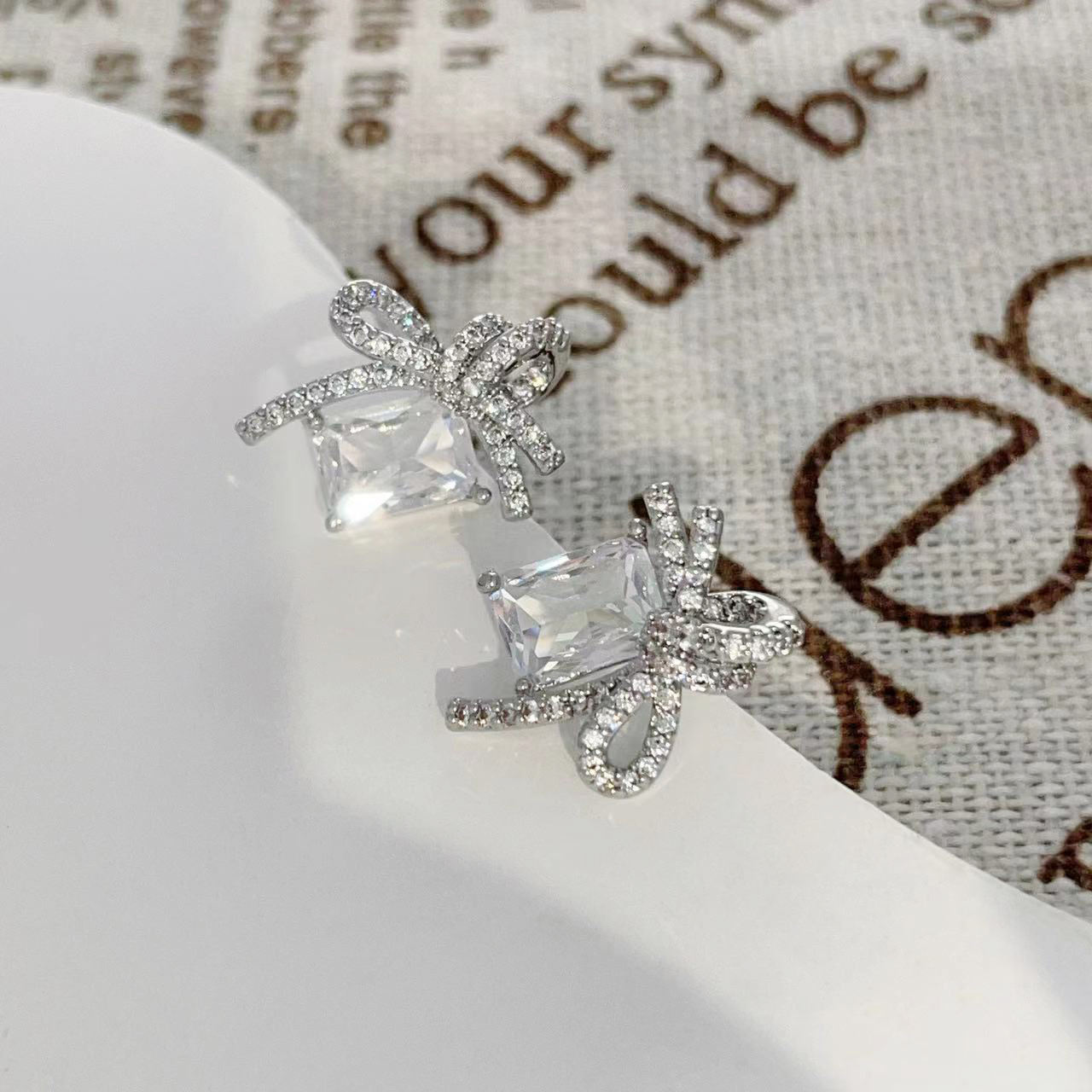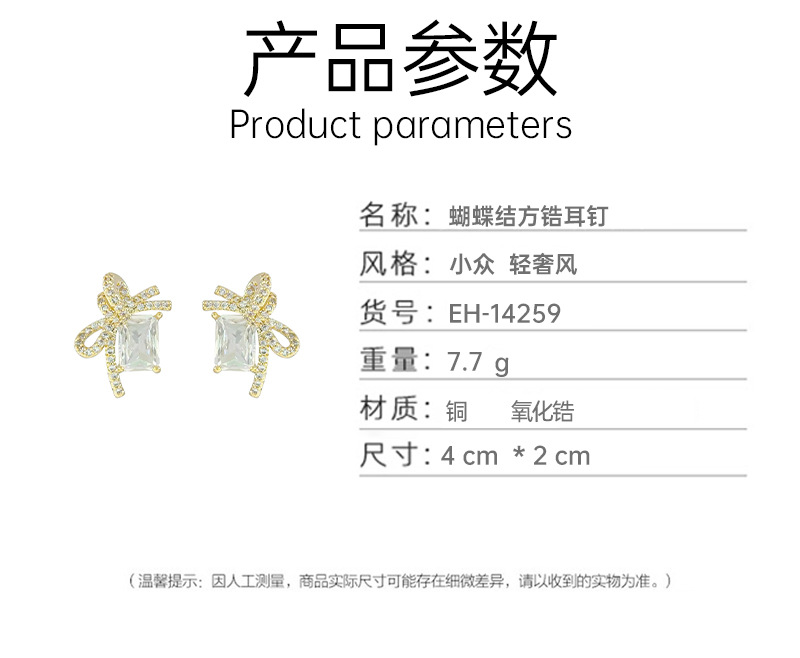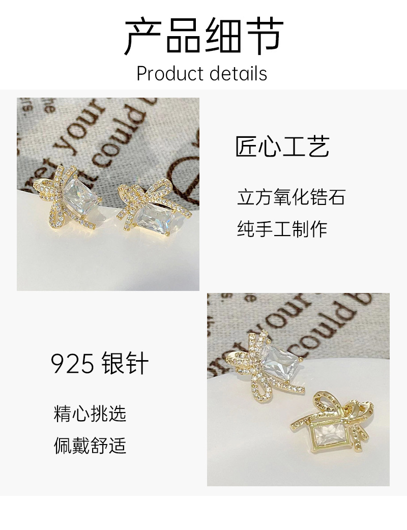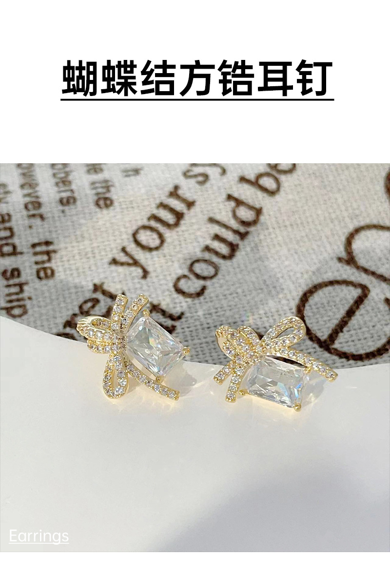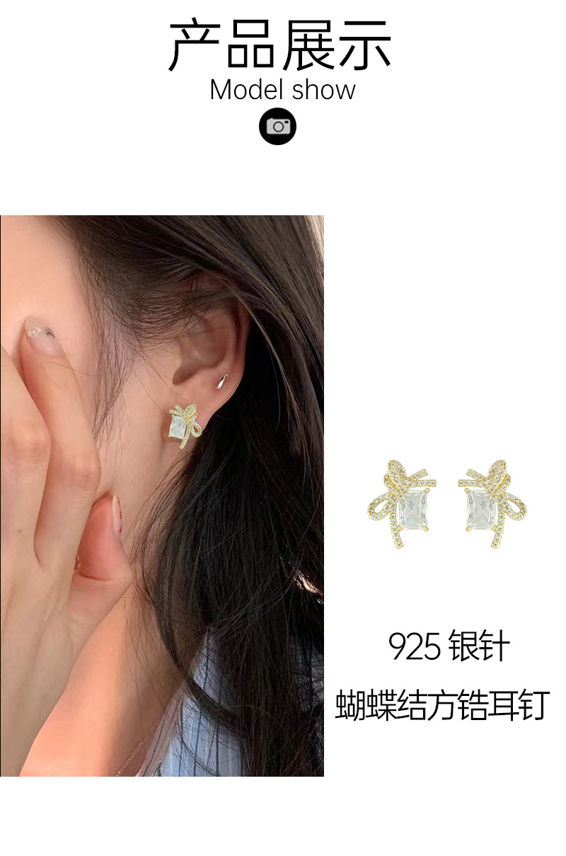 925银针几何方形锆石耳钉女轻奢镶锆蝴蝶结耳环2024新款百搭耳饰 English | 投诉