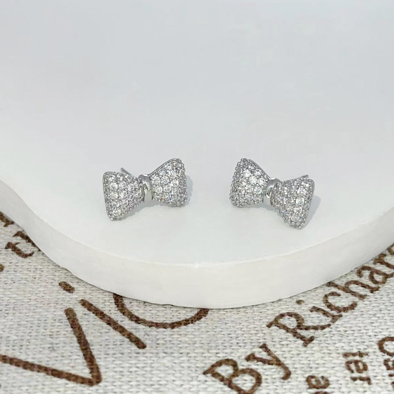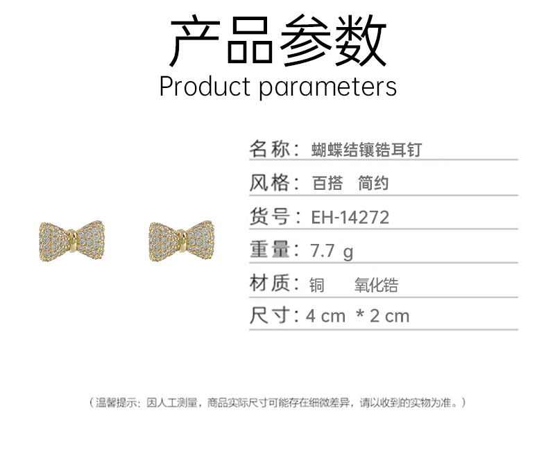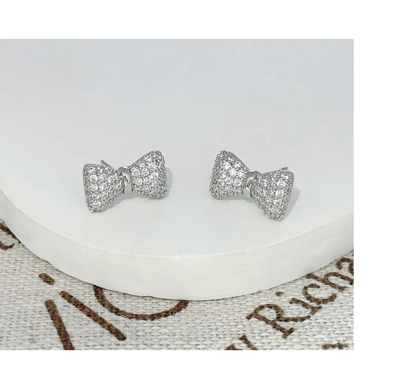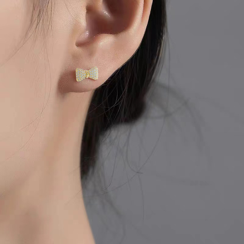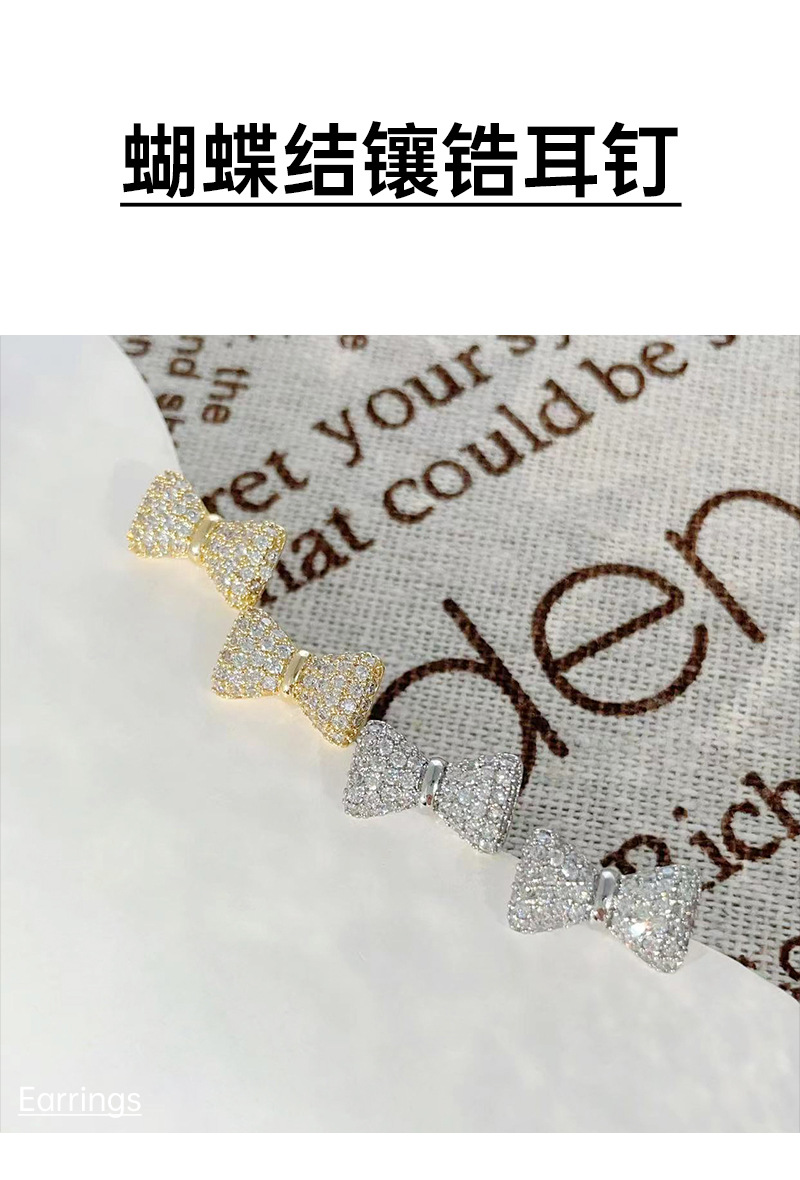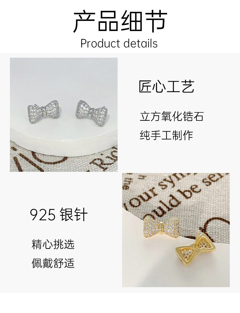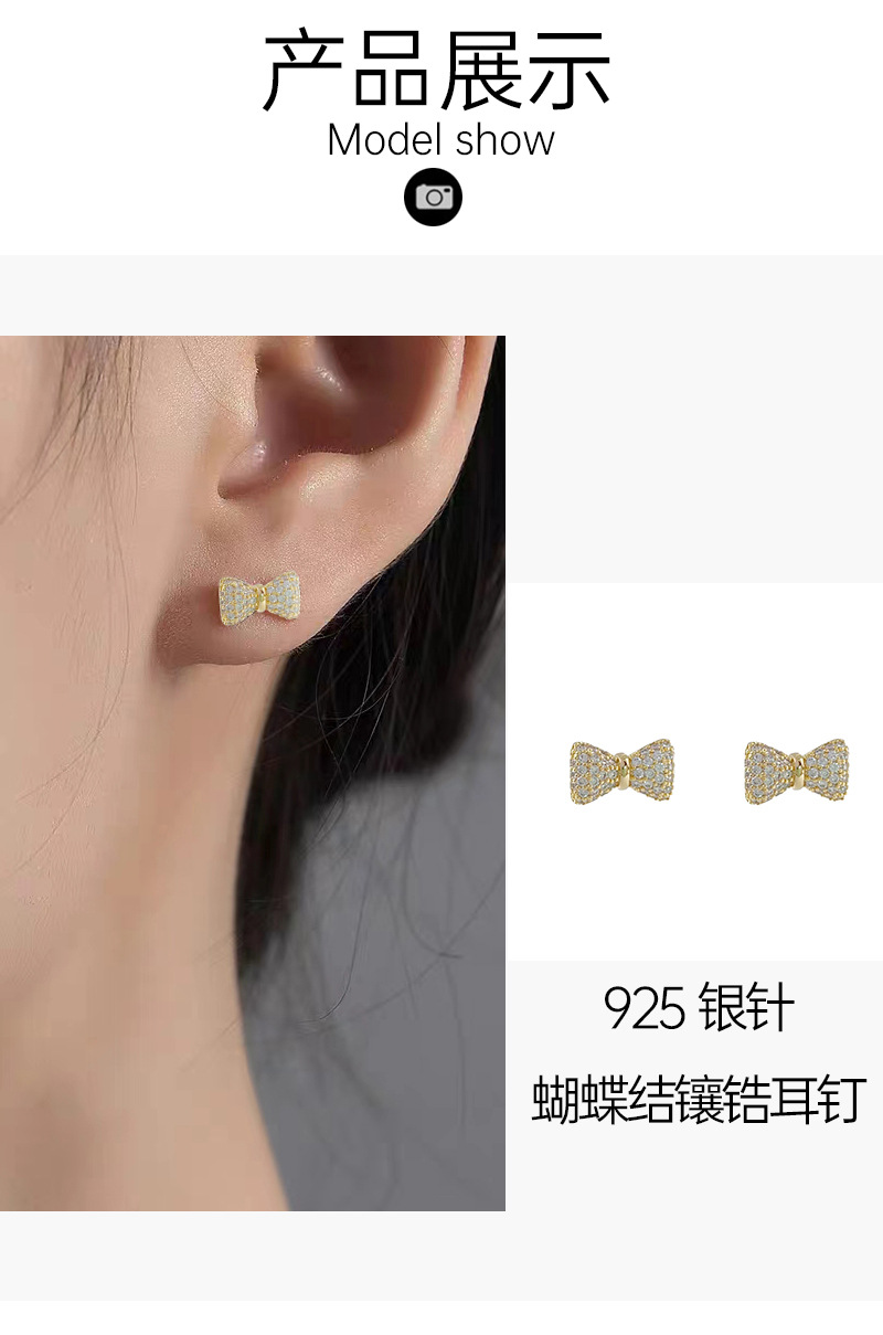 蝴蝶结微镶锆石耳钉简约高级感925银针耳环百搭设计ins风耳饰 English | 投诉
