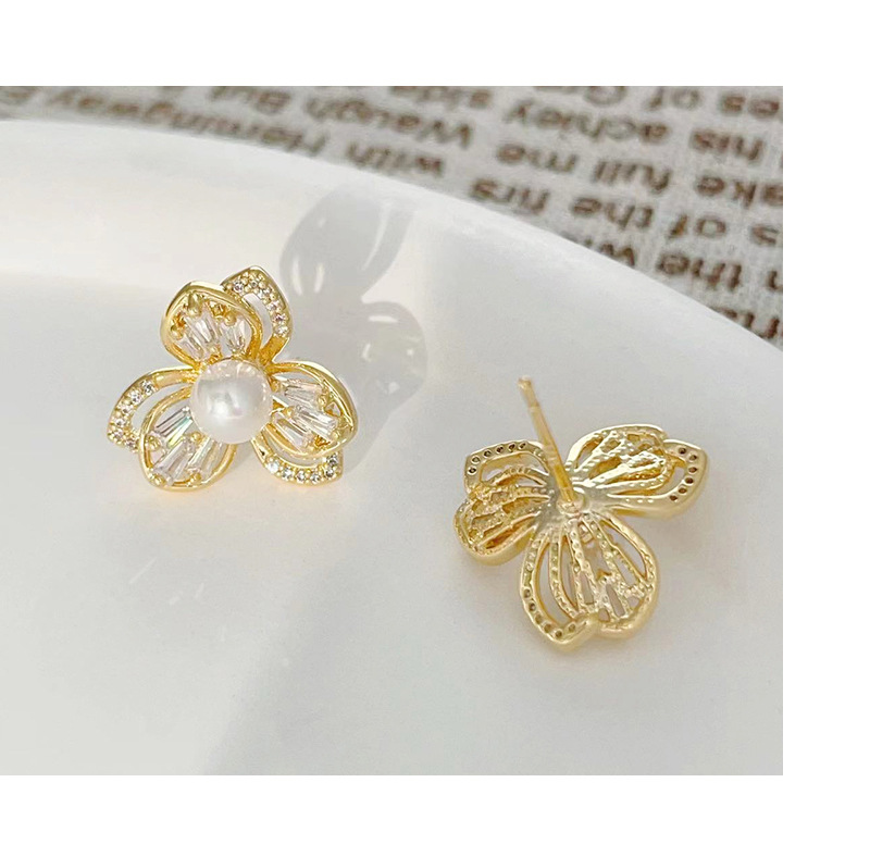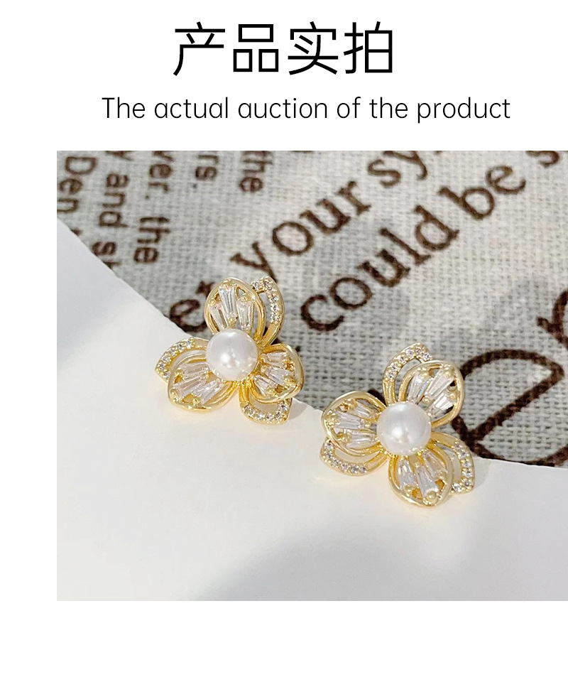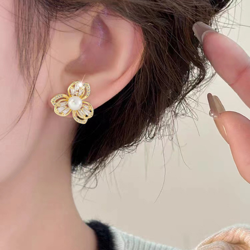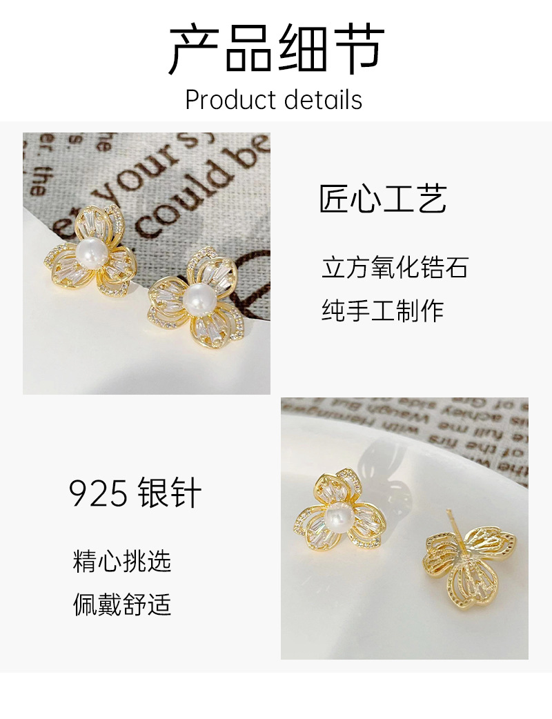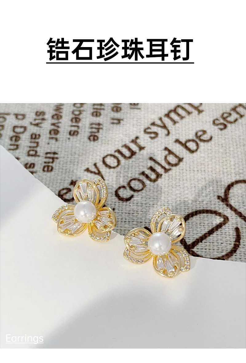 三叶草锆石珍珠耳钉女轻奢风小众设计耳环爆款高级感耳饰 English | 投诉