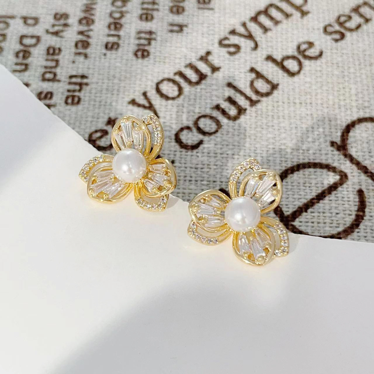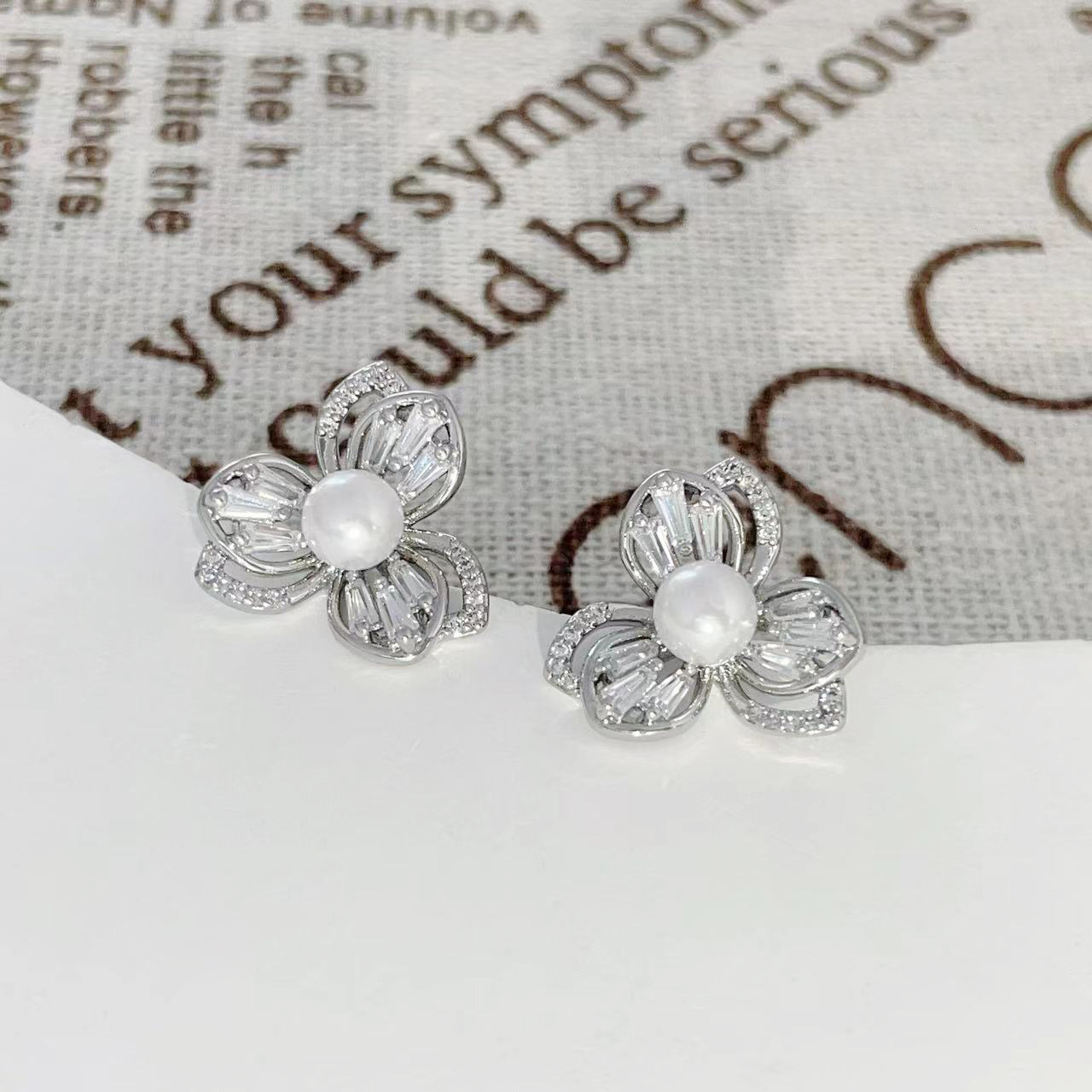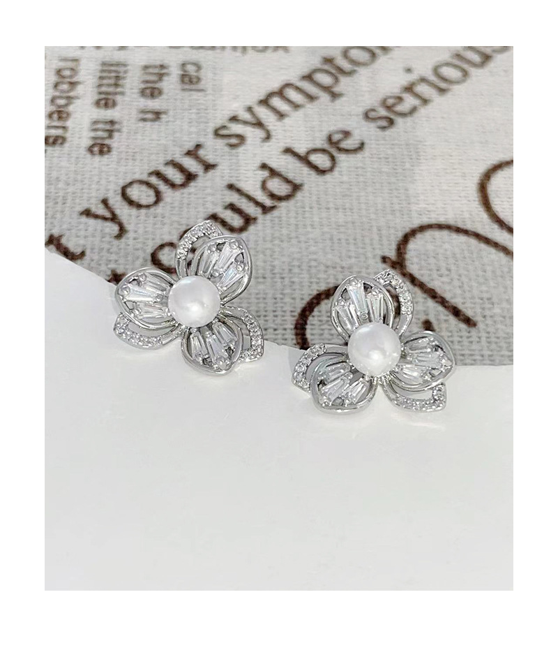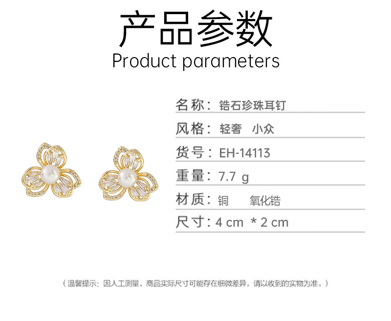 三叶草锆石珍珠耳钉女轻奢风小众设计耳环爆款高级感耳饰 English | 投诉
