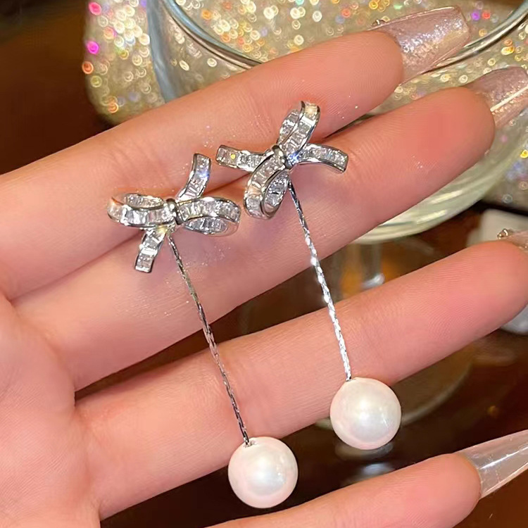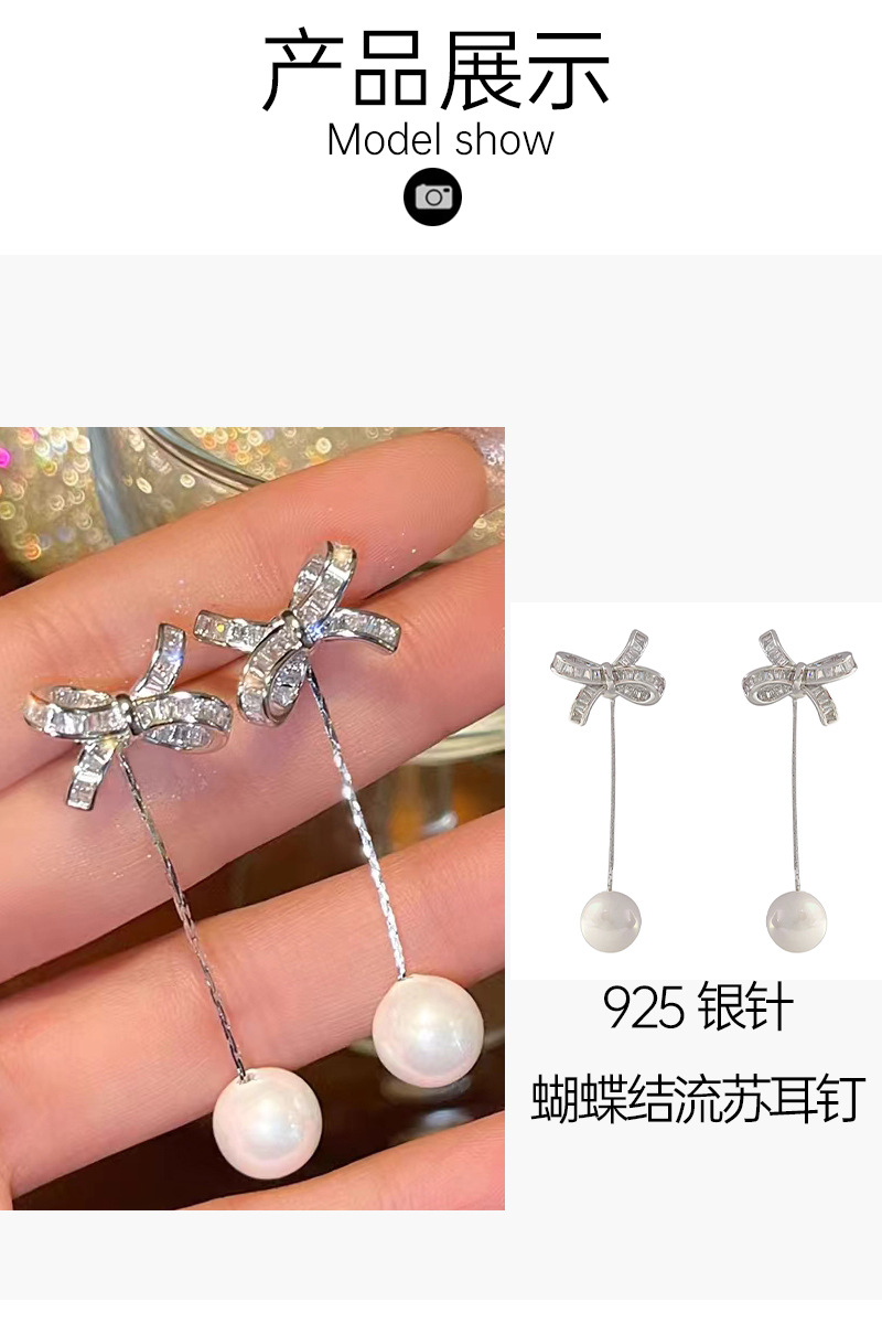 蝴蝶结流苏珍珠耳环女2024新款小众设计轻奢风超仙气质百搭耳饰 English | 投诉