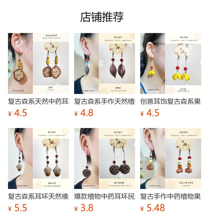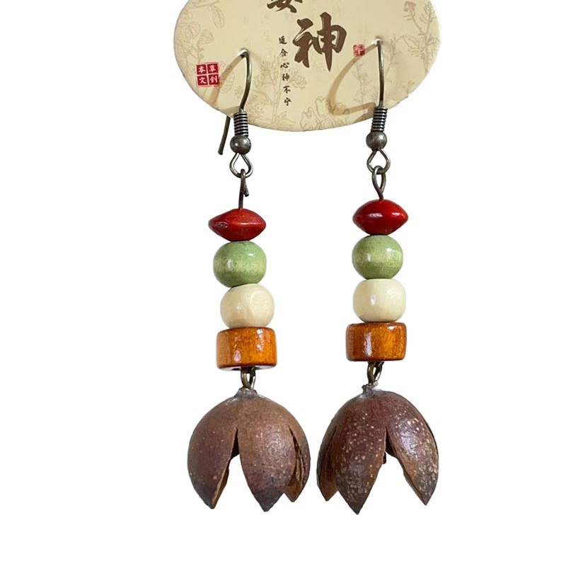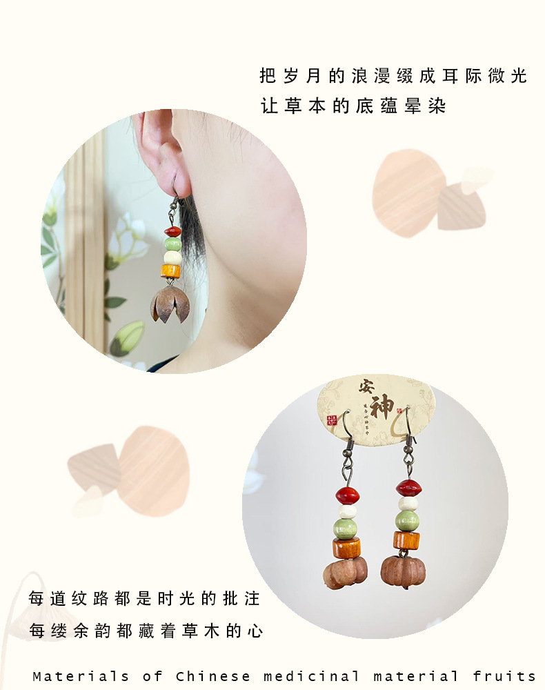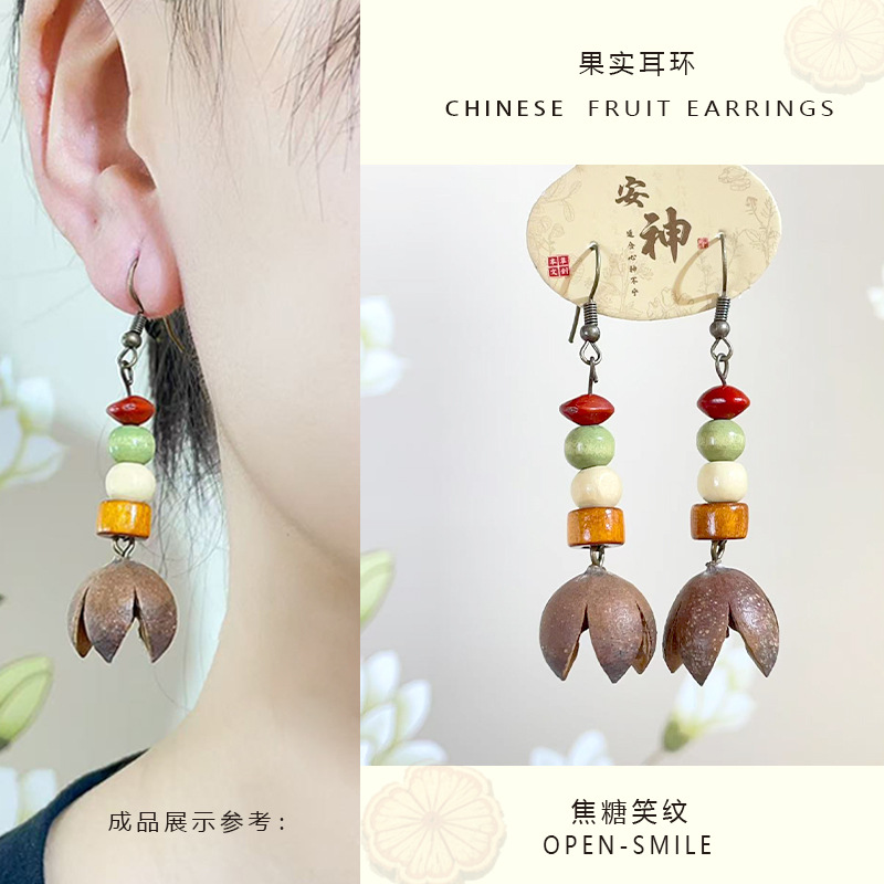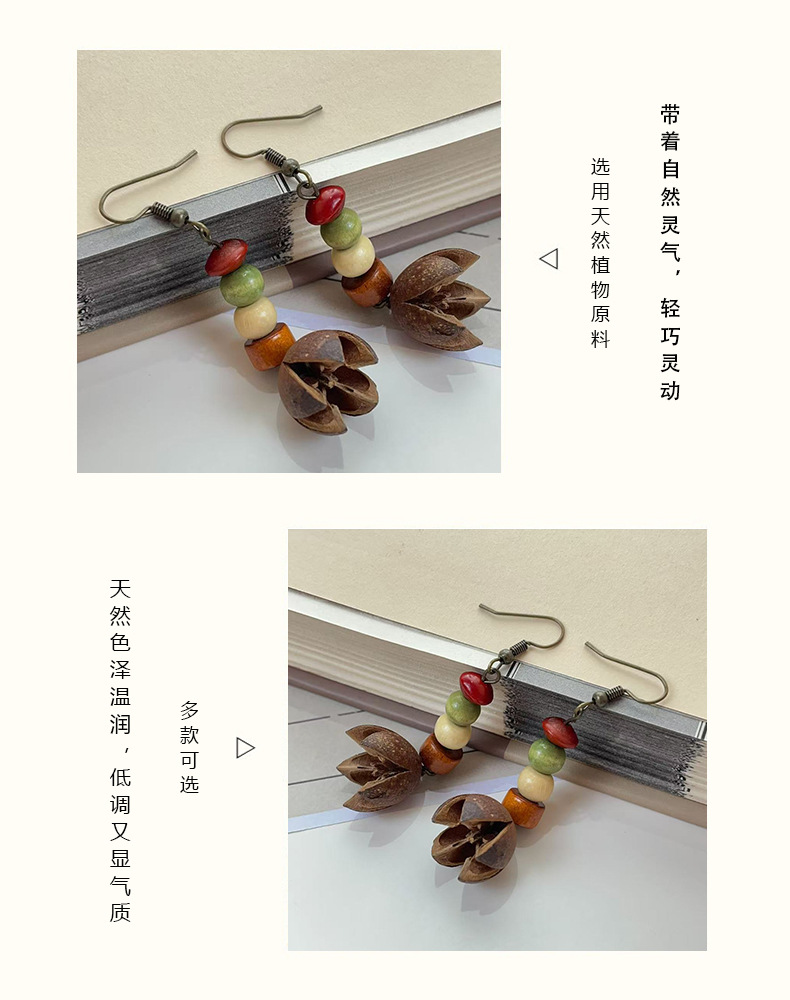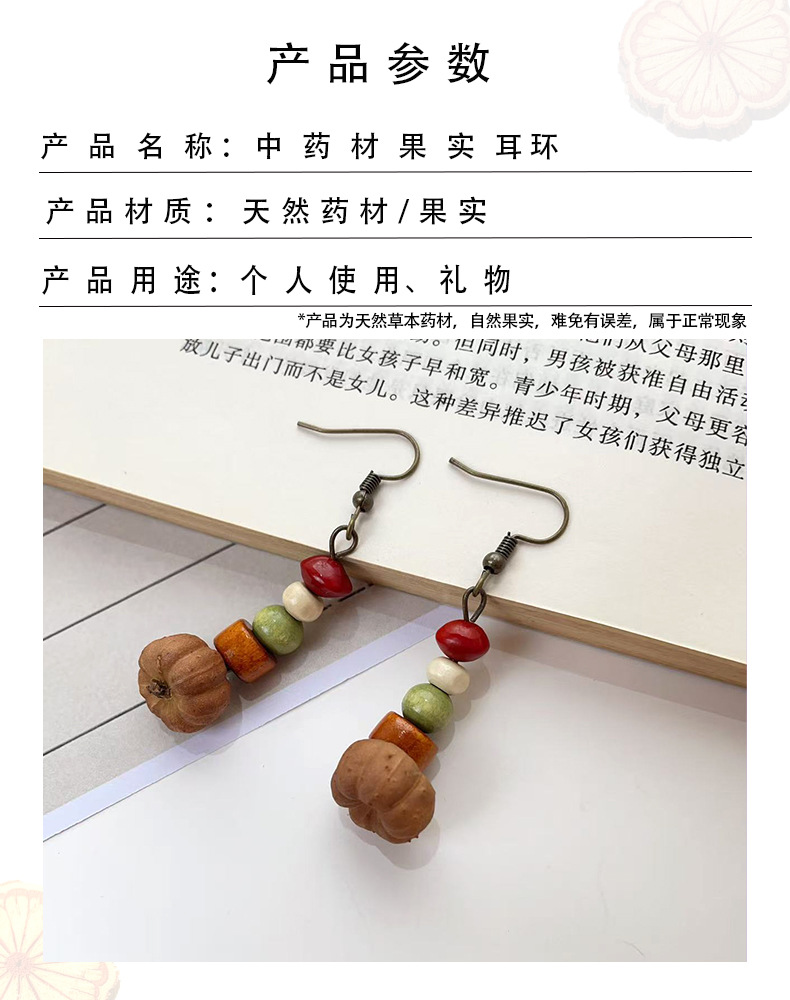 自然风香药耳环十字果植物果实耳饰手作民族风气质百搭开口笑耳环 English | 投诉