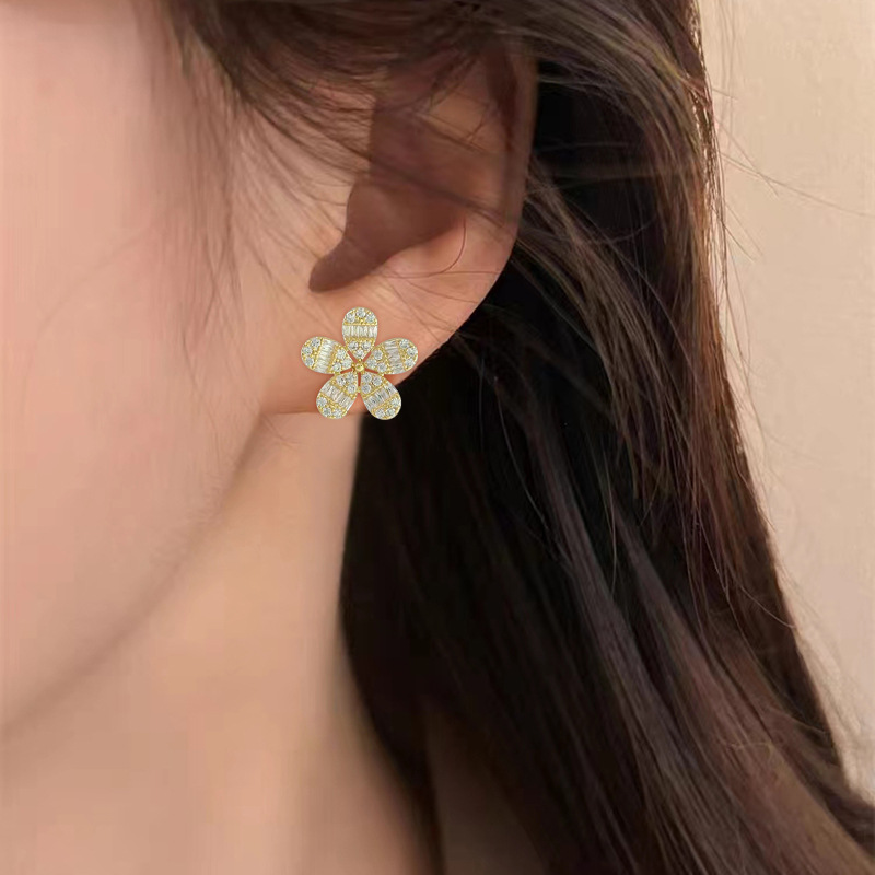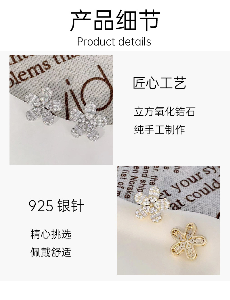 925银针微镶满锆花朵气质耳环2024新款高级感小清新花朵耳钉饰品 English | 投诉