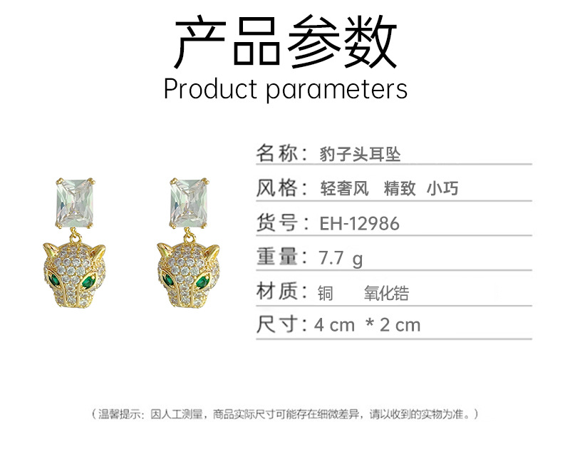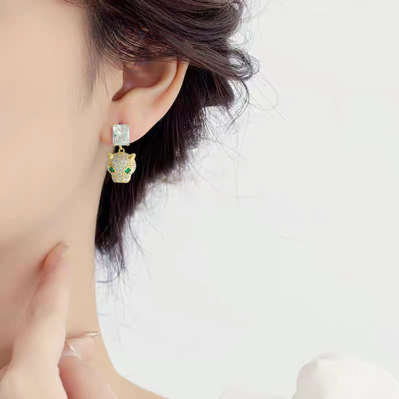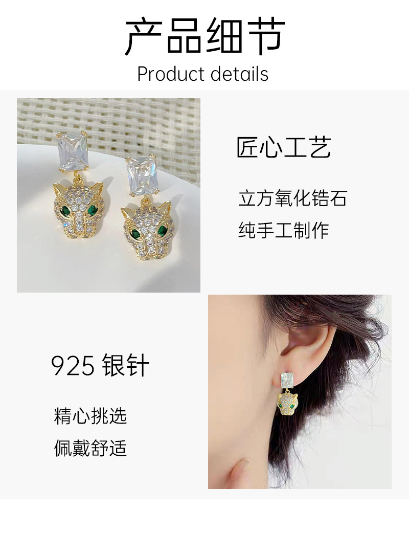 新款微镶满锆豹子头耳环925银针高级感轻奢风耳饰精致小巧耳坠 English | 投诉