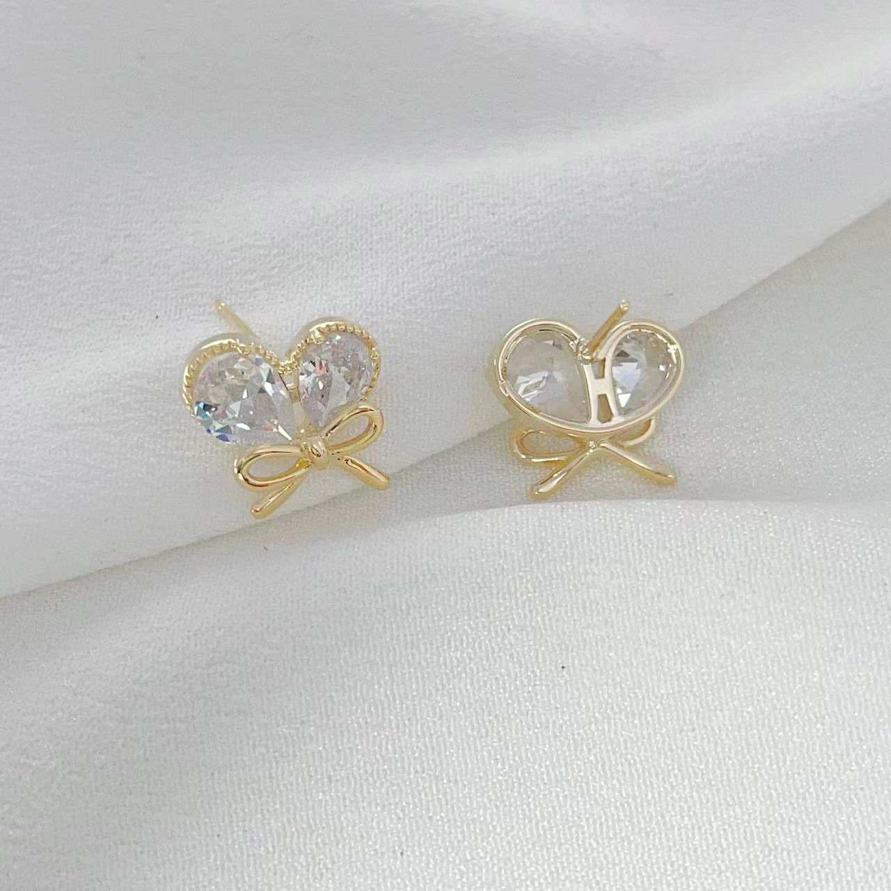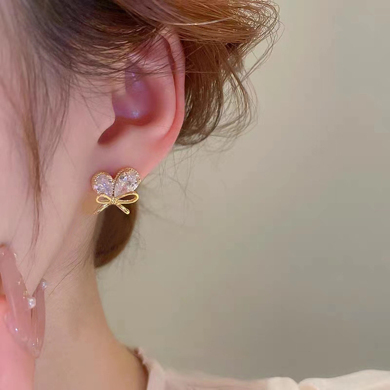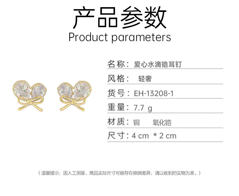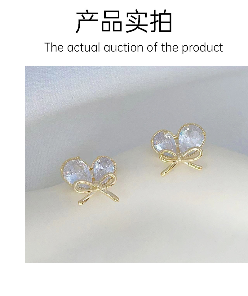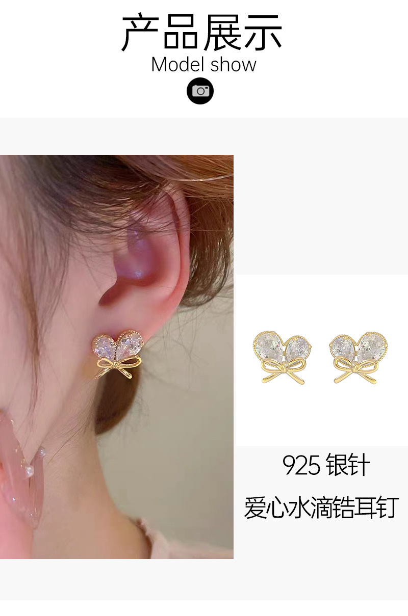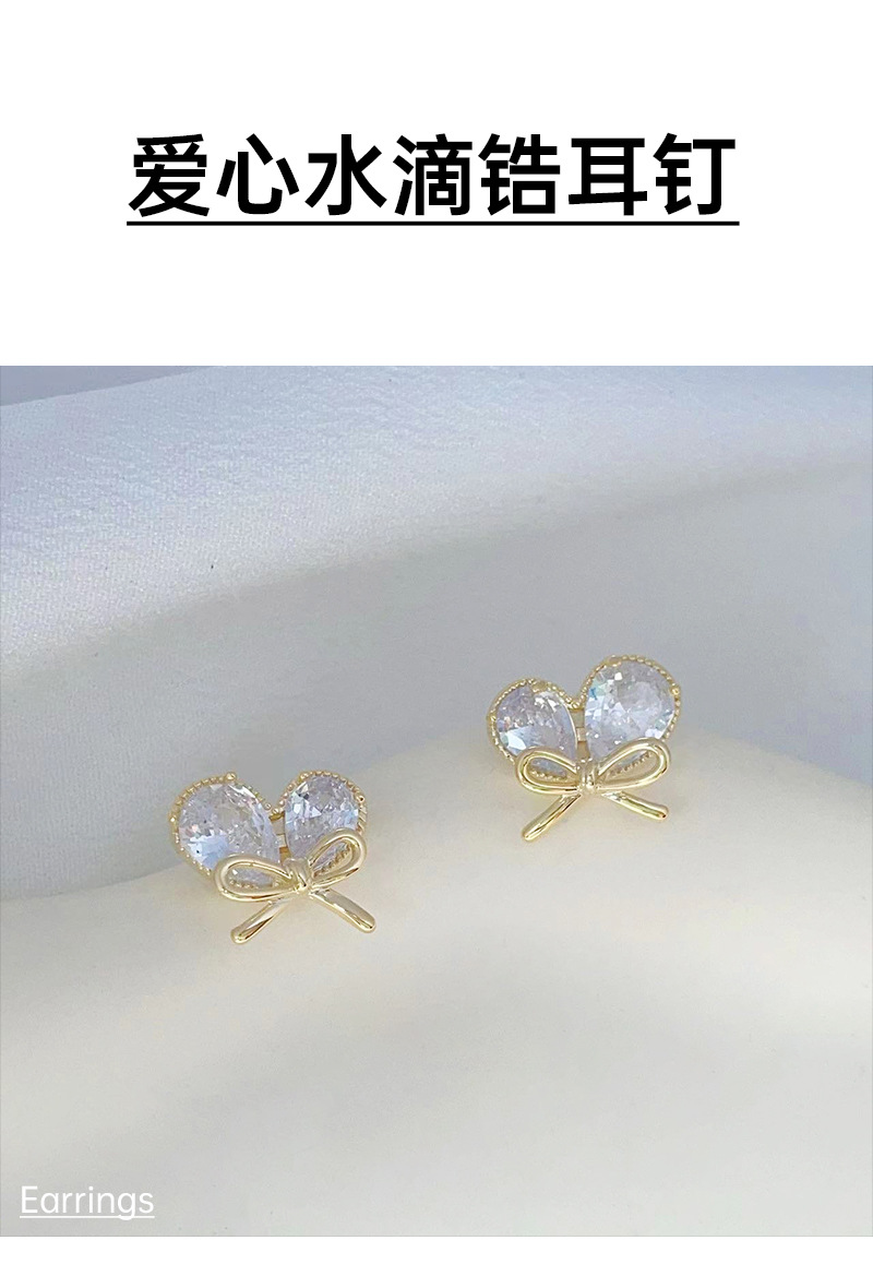 新款轻奢风耳环女镶嵌大水滴锆石蝴蝶结耳钉小巧心形耳饰 English | 投诉