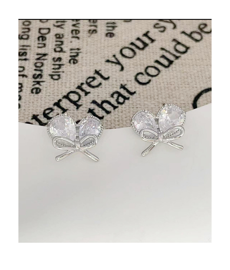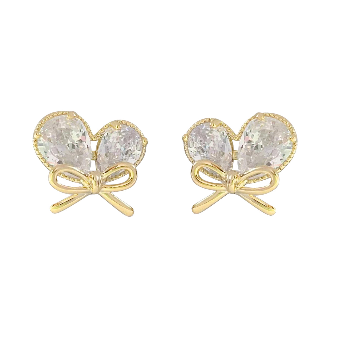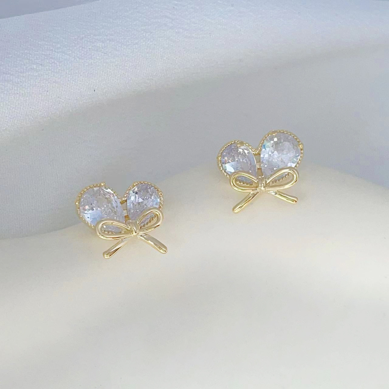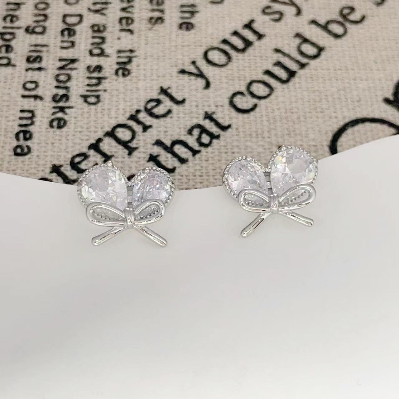 新款轻奢风耳环女镶嵌大水滴锆石蝴蝶结耳钉小巧心形耳饰 English | 投诉