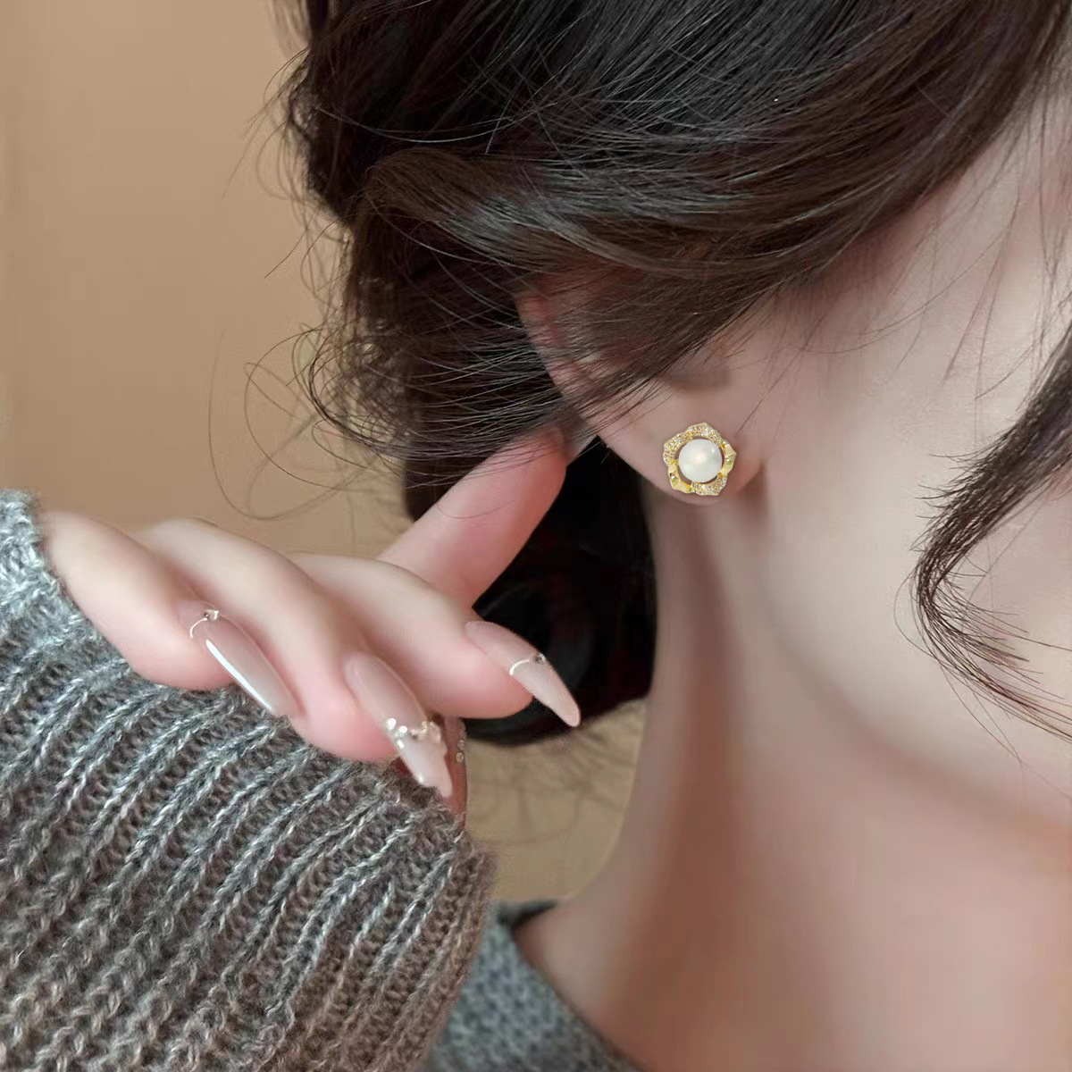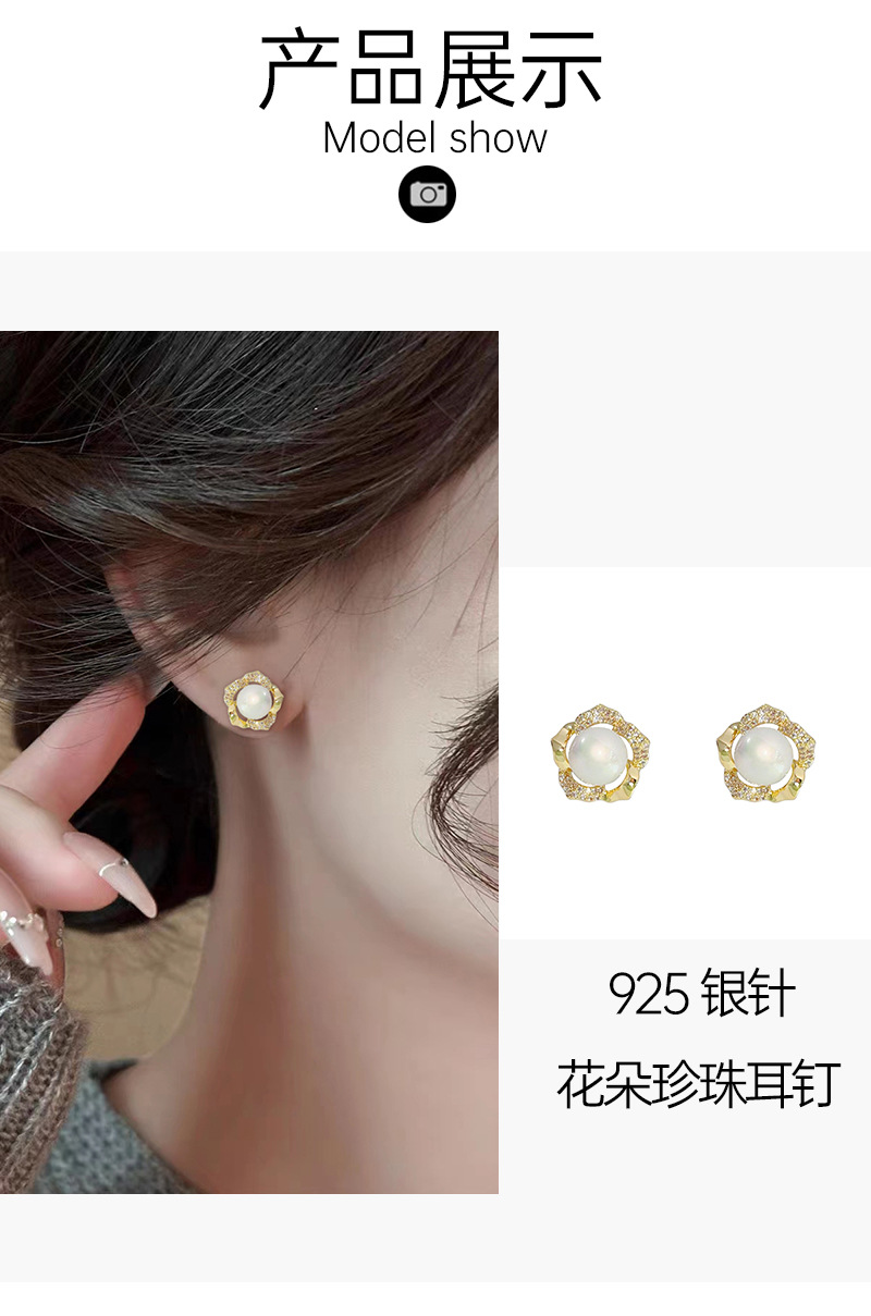 冬季新款花朵珍珠耳钉女高级感气质耳环潮轻奢风百搭设计 English | 投诉