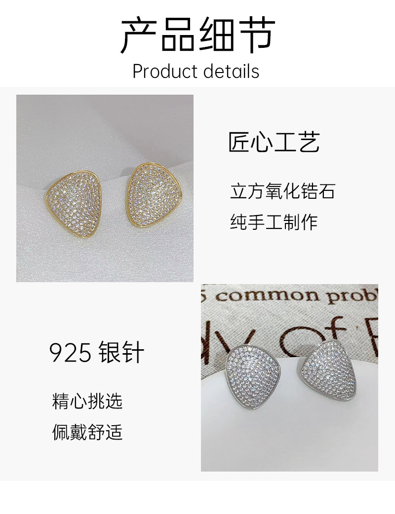 微镶超闪锆石耳环几何三角形耳钉925银针时尚耳饰简约百搭设计 English | 投诉