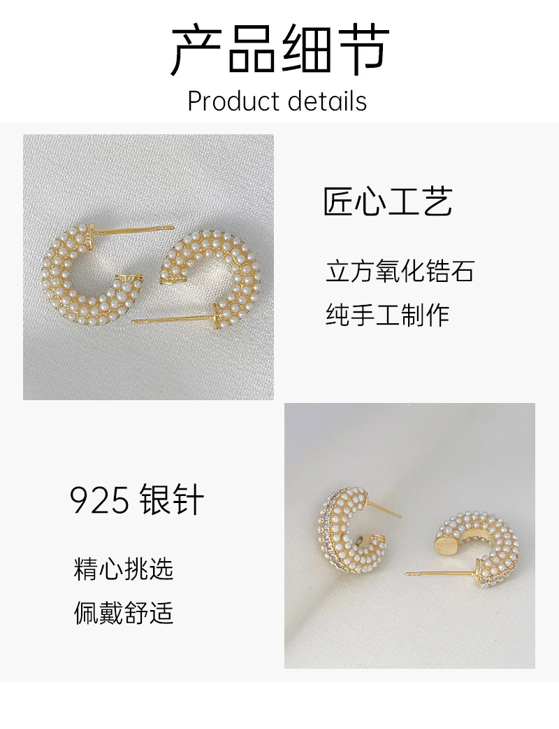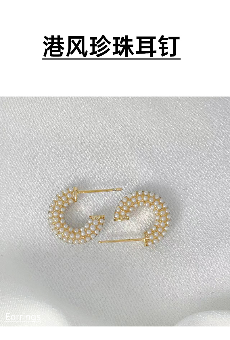 S925银针复古港风珍珠耳钉女小巧简约冷淡风网红耳环款耳饰 English | 投诉
