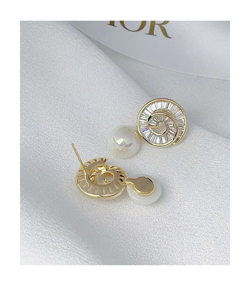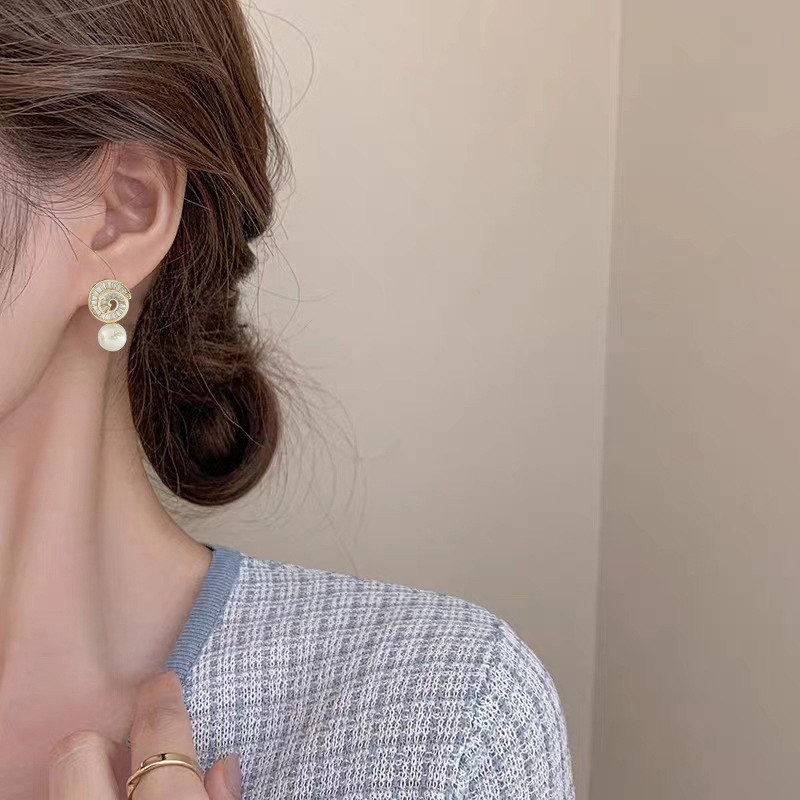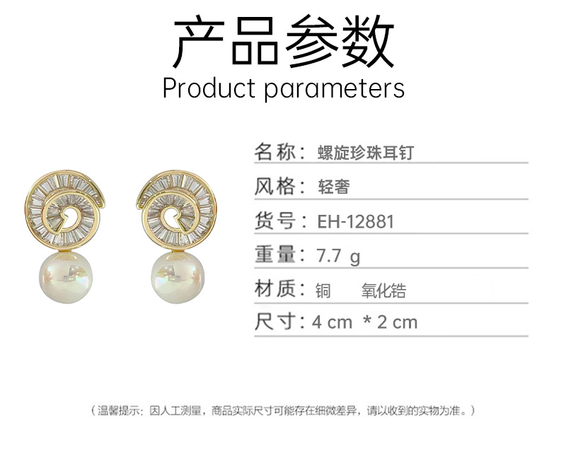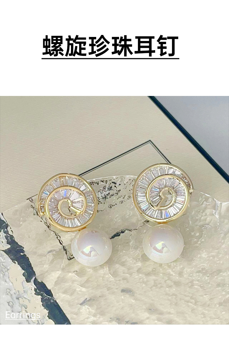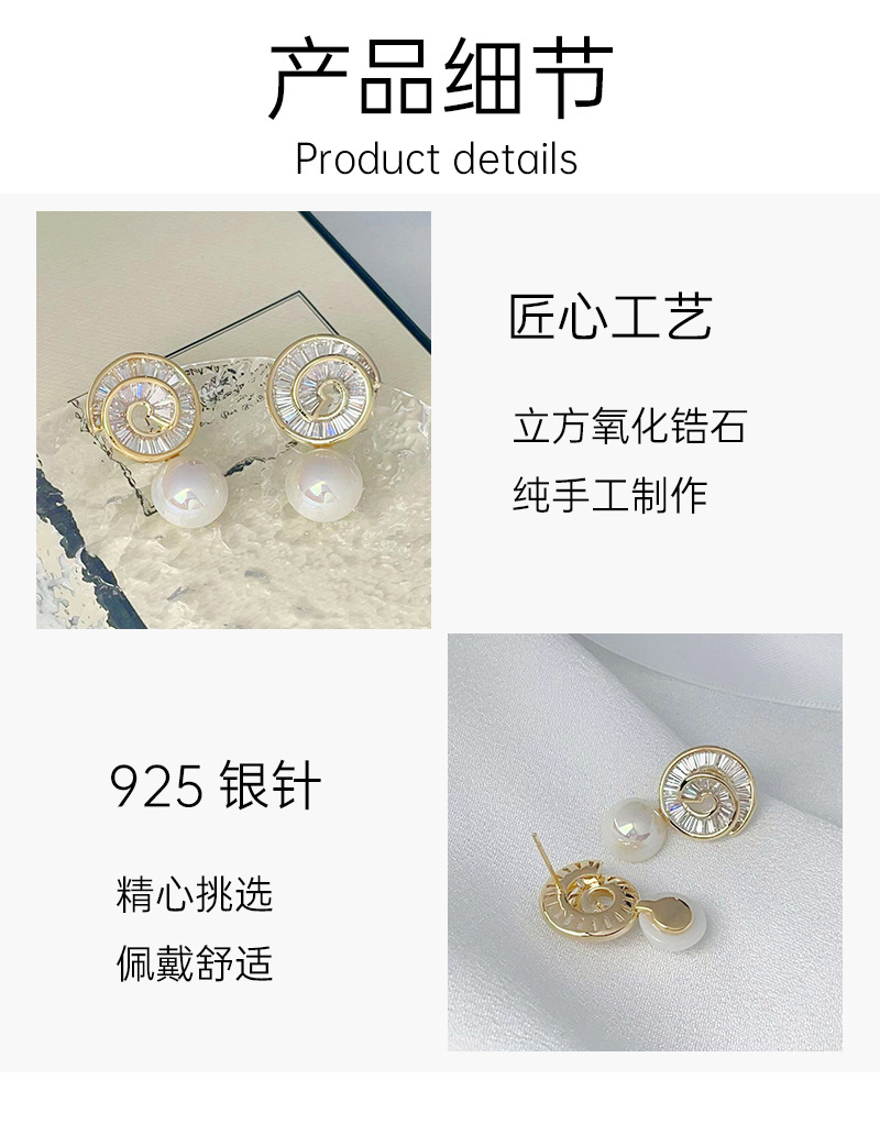 925银针微镶锆石螺旋珍珠耳钉高级感轻奢风耳环新款潮耳饰 English | 投诉